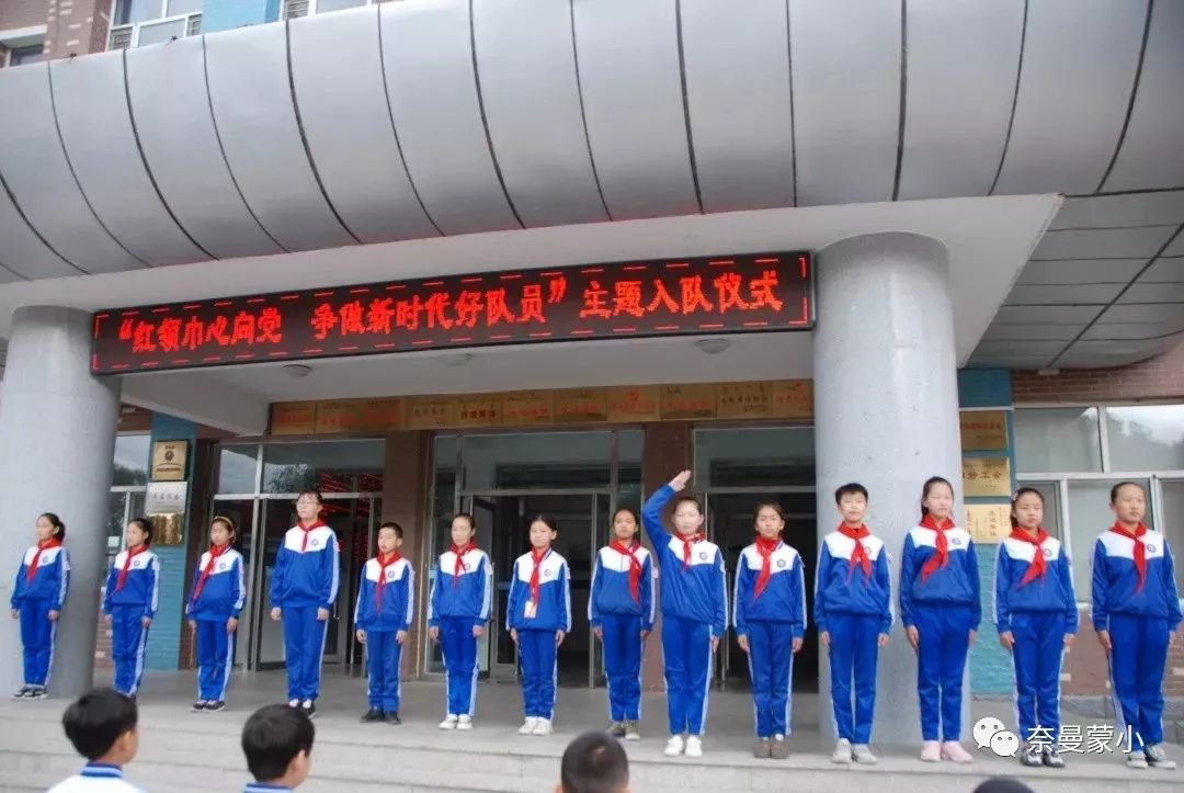 10月11日上午,奈曼旗蒙古族实验小学举行了“红领巾心向党, 争做新时代好队员”主题入队仪式,为少先队组织增添新鲜血液。112名一年级新生,通过老师、家长的培养和自身的努力,光荣加入了中国少年先锋队。