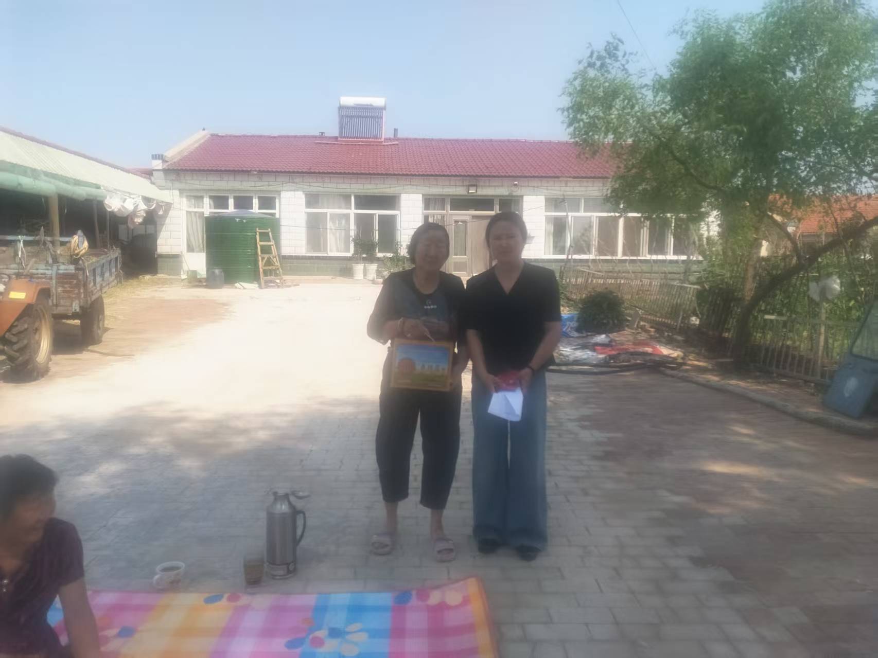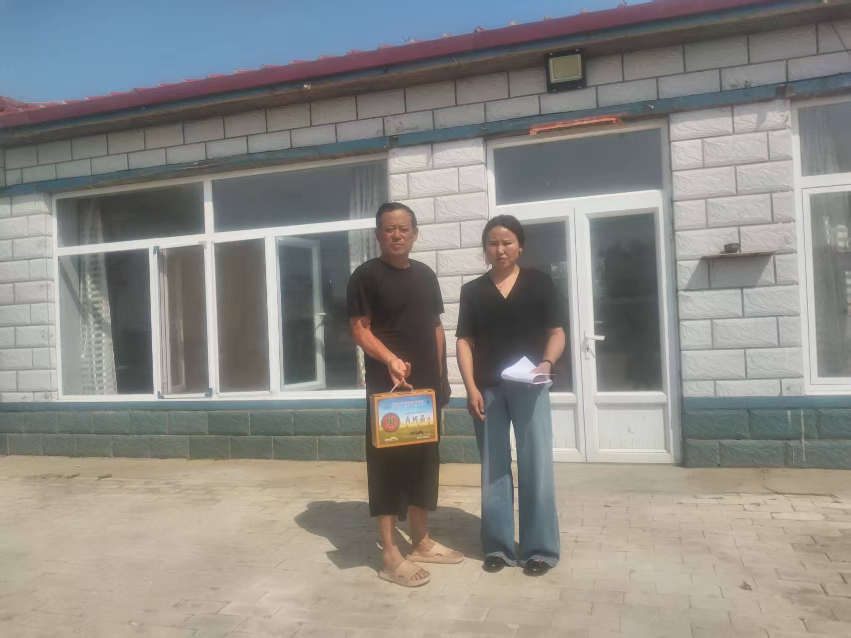 两委成员给监测户发放茶叶