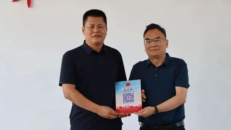旗人民政府副旗长、公安局局长杨春生为内蒙古和谊镍铬复合材料有限公司授予“企法通”二维码标牌
