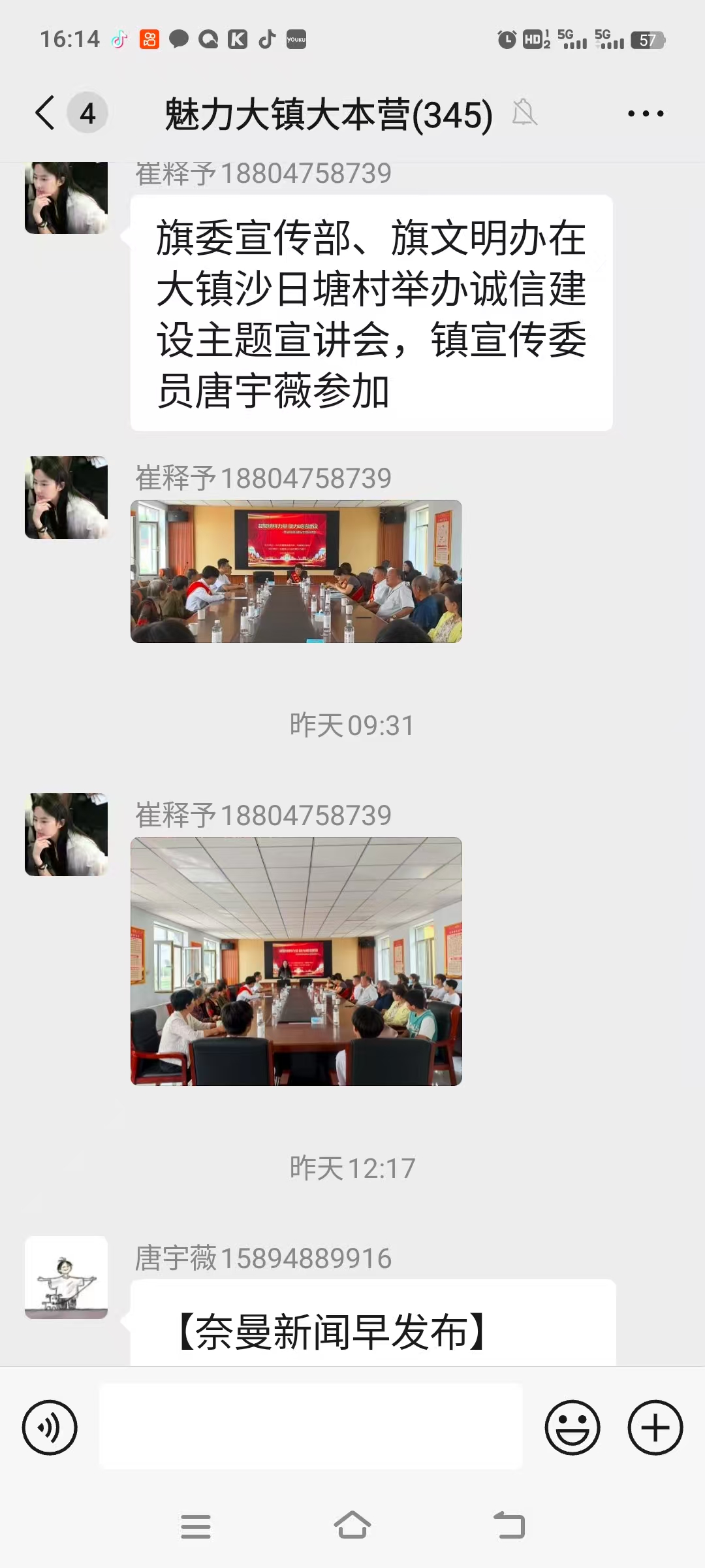 旗委宣传部、旗文明办在大镇沙日塘村举办诚信建设主题宣讲会,镇宣传委员唐宇薇参加