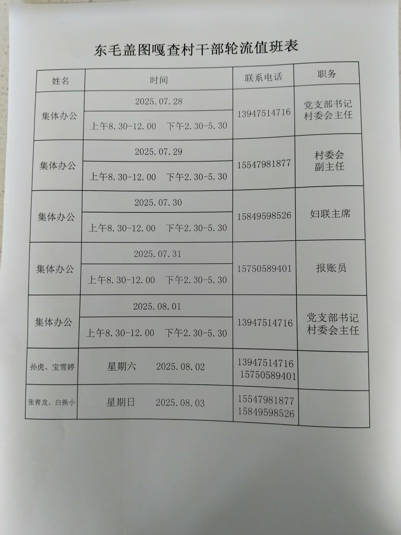受补贴干部轮流值班表