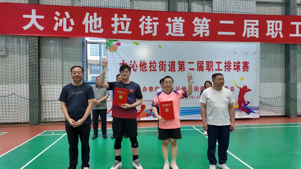 比赛结束后,举行了隆重的颁奖仪式。街道领导为获奖队伍颁发了奖杯和证书,并对所有参赛队伍和运动员的精彩表现给予了充分肯定。街道工会主席田爱东表示,这次排球赛不仅是一场体育竞技,更是一次增进职工感情、加强团队凝聚力的机会。希望大家能将赛场上的拼搏精神带到日常工作中,为街道的发展贡献更多的力量。