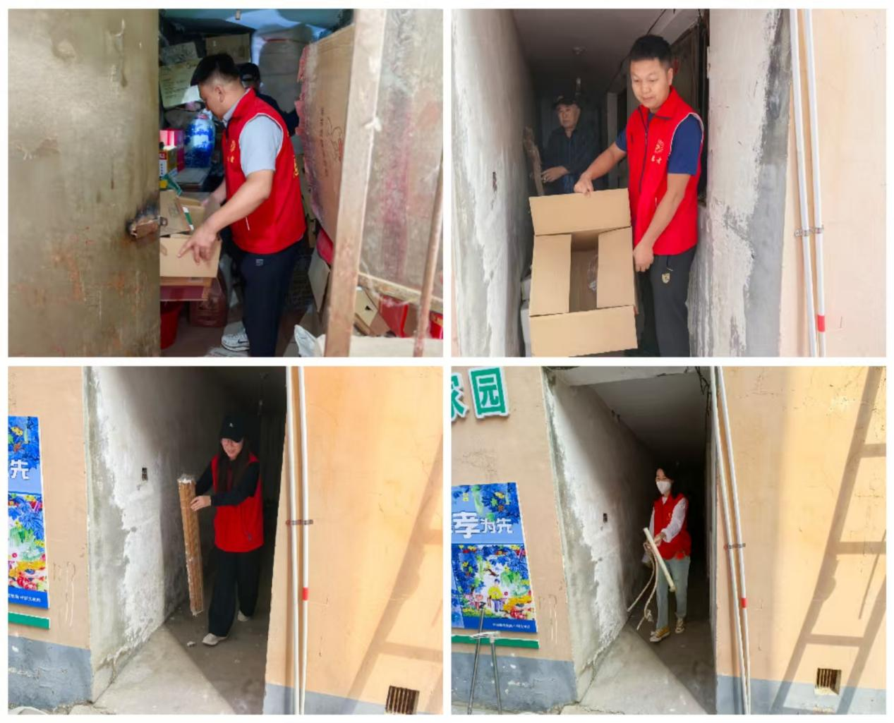现场,我单位党员、职工与富民社区工作人员组成清理队伍,对各楼栋楼道、仓库进行逐一排查清理。针对楼道、仓库内堆放的杂物、旧家具、纸壳箱、泡沫等易燃物品逐一搬出并进行集中清理。对于违规存放的私人物品耐心劝导他们自行清理或协助搬运至合适位置。尤其对于年老体弱、身体行动不便等居民对家里堆放杂物无法自行清理的,帮助他们进行清理。在清理过程中,我们还向居民普及了消防安全知识,反复讲解楼道堆放杂物的危害,提高居民的安全意识和环保意识。许多居民表示认识到了楼道杂物的隐患,并且今后会积极配合工作,共同维护楼道环境。