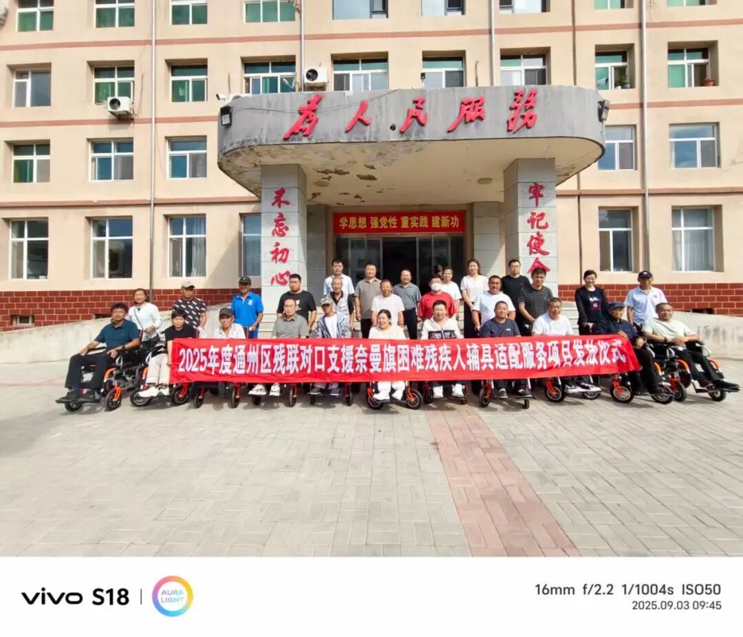 为切实解决困难残障群体"出行难"问题,让科技赋能生活、让关爱触达人心,奈曼旗残疾人联合会于2025年9月3日上午,在大沁他拉街道隆重举办2025年度通州区残联对口支援奈曼旗困难残疾人辅具适配服务项目发放仪式。旗残联贾学宏副理事长、康复部张立欣、街道、大镇、义隆永镇、黄花塔拉镇残联理事长、受助残疾人及其监护人共30余人出席了此次活动。
