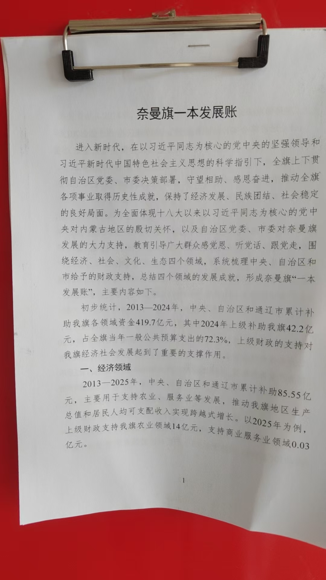 奈曼旗一本发展账
