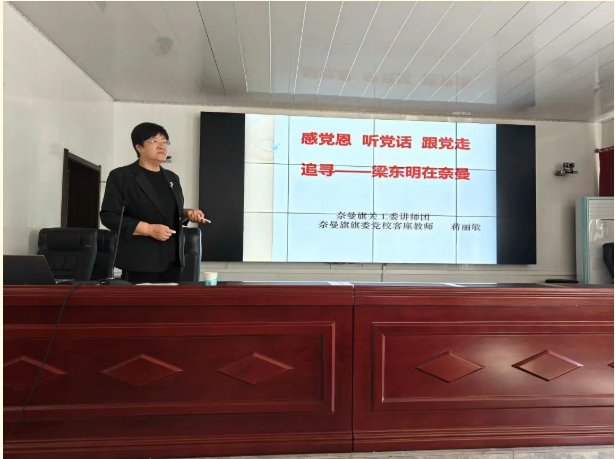 会上,奈曼旗关工委讲师团成员、旗委党校客座教师蒋丽敏以《感党恩,听党话,跟党走-追寻梁东明在奈曼》为题,生动讲述梁东明烈士的生平事迹。通过鲜活的故事,让在场干部群众深刻感悟革命先烈的伟大精神与坚定信仰,此次宣讲既是对烈士的缅怀纪念,更以党性教育与爱国主义教育为抓手,进一步坚定了大家“感党恩、听党话、跟党走”的决心。