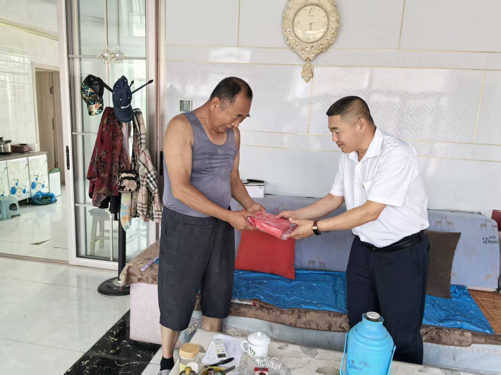 王明会镇长到刘家堡村、兴隆地村、兴隆庄村给光荣在党50周年老党员发放荣誉纪念章