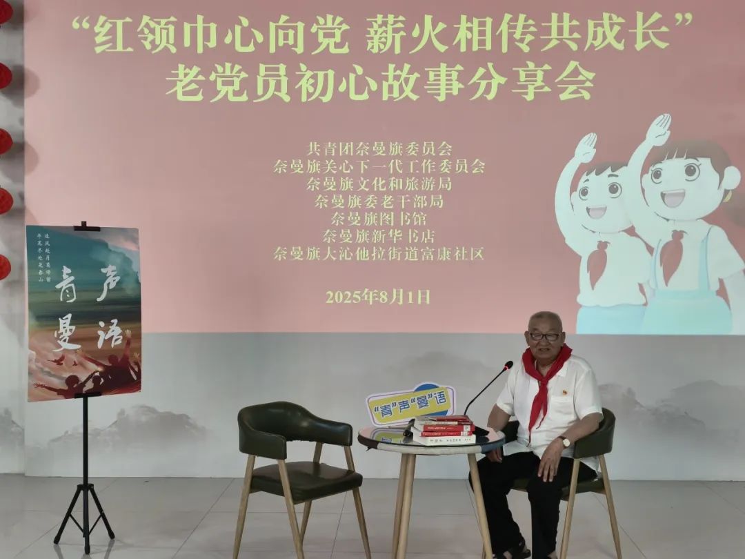 为进一步弘扬爱国主义精神,传承红色基因,8月1日,由共青团奈曼旗委员会、旗关心下一代工作委员会、旗文化和旅游局、旗委老干部局、旗新华书店、大沁他拉街道富康社区联合举办的“红领巾心向党 薪火相传共成长”老党员初心故事分享会在旗图书馆举行。活动旨在通过老党员的亲身讲述,引导青少年铭记历史、坚定信念,让红色薪火代代相传。