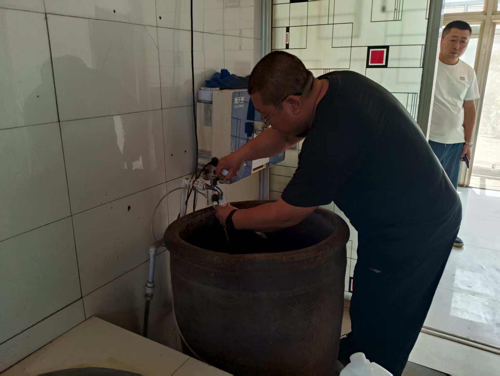旗水务局、旗疾控中心、镇水务站联合到兴隆地村,进行饮水安全排查工作,并采取水样进行水质检测