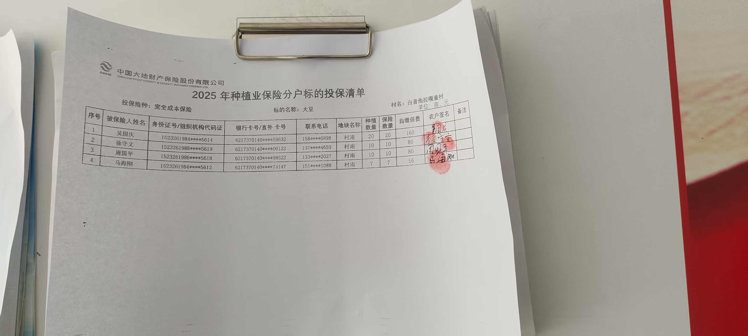 白音他拉嘎查2025年种植业保险分户标的投保清单
