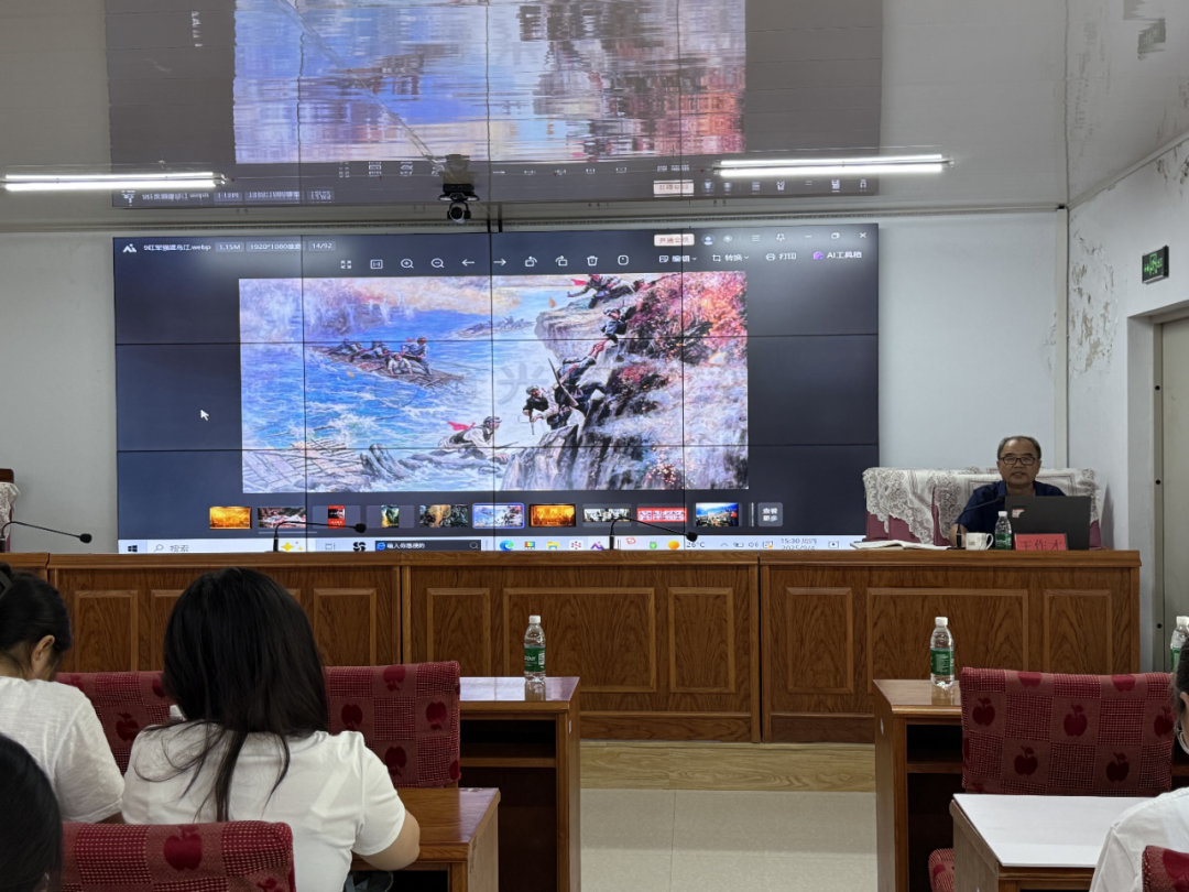 捐赠仪式结束后,由王作才老师为大家讲解了"红军抗战精神"。王老师通过生动感人的故事,深入浅出地讲述了革命先辈艰苦奋斗、无私奉献的崇高品质,激励了在场的每一个人,让志愿者们在新时代志愿服务中践行初心使命。