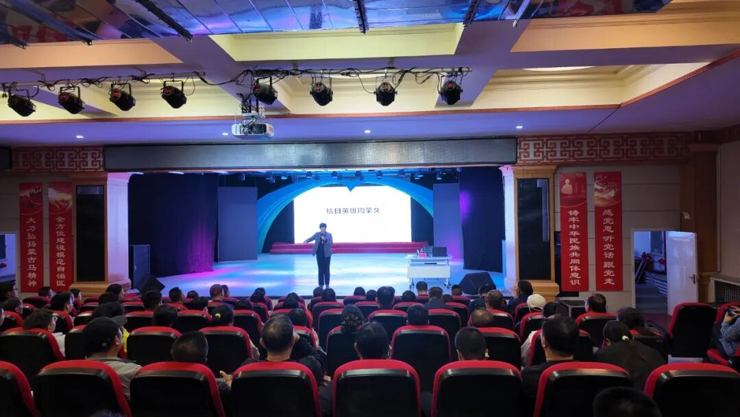 本次讲座邀请旗关工委讲师团讲师、旗委党校客座教师蒋丽敏授课,她结合珍贵历史图片与详实文献资料,生动还原了周荣久烈士组织抗日救国军的壮阔历程:从爱国志士振臂集结力量,到带领战士攻打八仙筒,从团结蒙汉群众共御外侮,再到坚守阵地直至最后一刻。在场人员深刻铭记烈士事迹,领悟伟大抗战精神的时代价值,更清晰认识到“国防不是抽象概念,而是先辈用热血守护的家园安宁,是每个人与国家命运紧密相连的责任纽带”。讲座结束后,现场以热烈掌声向蒋老师致谢。