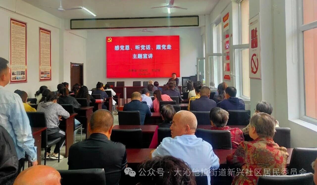 为深入推进“感党恩、听党话、跟党走”群众教育走深走实,大沁他拉街道以多种形式将党的声音和关怀传递到基层百姓心中,让党的理论与政策走进基层、深入人心。