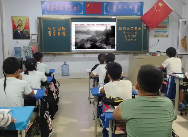 活动伊始,老师以“铭记历史,珍爱和平” 为核心,生动讲述了“918 事变”的历史背景、经过与深远影响。在课堂上,老师借助老照片、历史纪录片片段等资料,将80余年前那段山河破碎、民族危亡的岁月清晰地呈现在学生眼前。一个个沉重的历史细节,让他们对“国家安宁”的意义有了更真切的理解,也让爱国主义的种子在潜移默化中深深扎根在他们心中。
