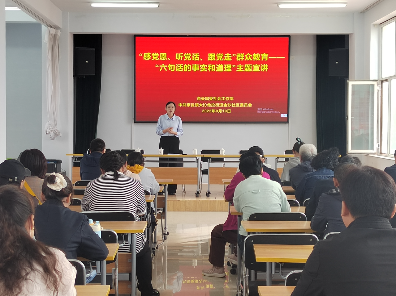 感党恩、听党话、跟党走丨旗委社会工作部联合旗医疗保障局走进金沙社区宣讲“六句话的事实和道理”,传递惠民温度