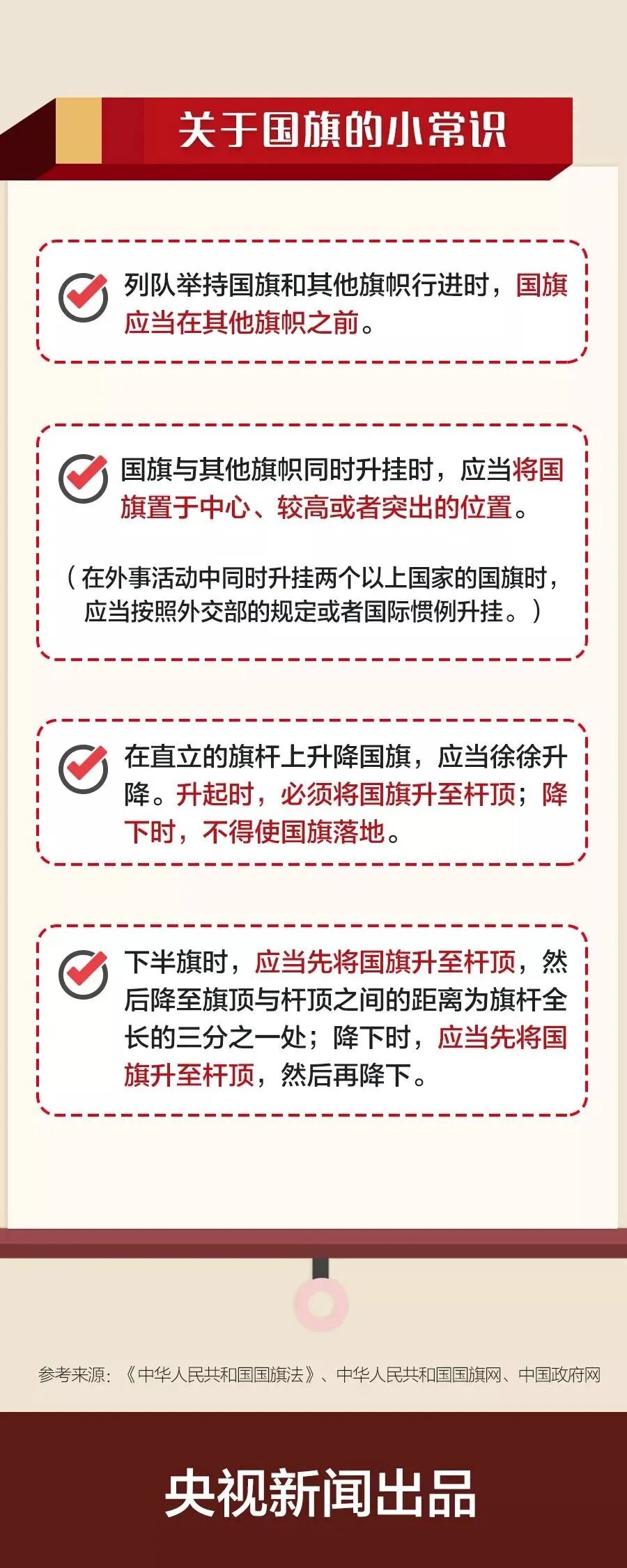 虽说挂国旗是热爱祖国的表现,但如果悬挂方式不妥,就可能违反《中华人民共和国国旗法》。五星红旗,是中华人民共和国的象征和标志,必须规范与正确使用。今天,通过一张图,学习挂国旗的各种小知识↓↓