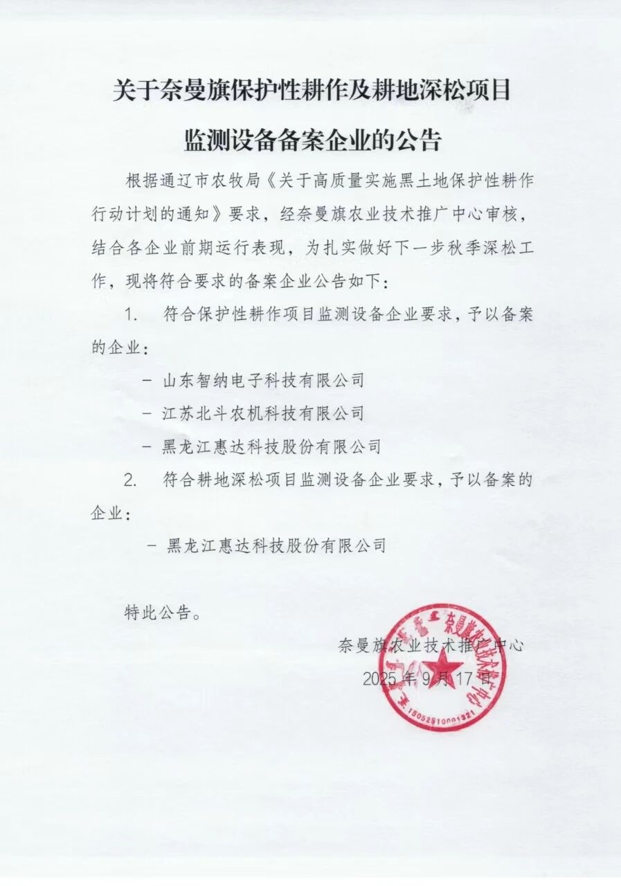 关于奈曼旗保护性耕作及耕地深松项目监测设备备案企业的公告