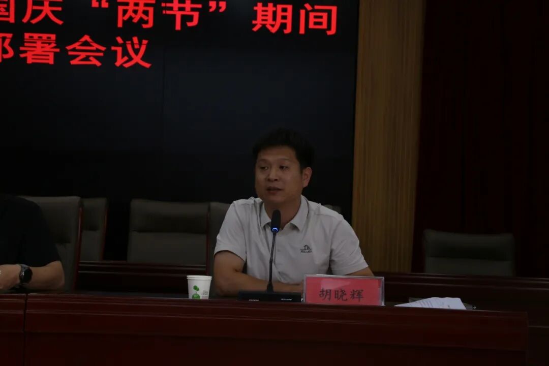 镇党委委员、政府副镇长胡晓辉对中秋国庆“两节”期间安全生产工作进行了安排部署,要求各村要坚决防范和遏制各类安全事故的发生,确保全镇人民平安祥和过节。