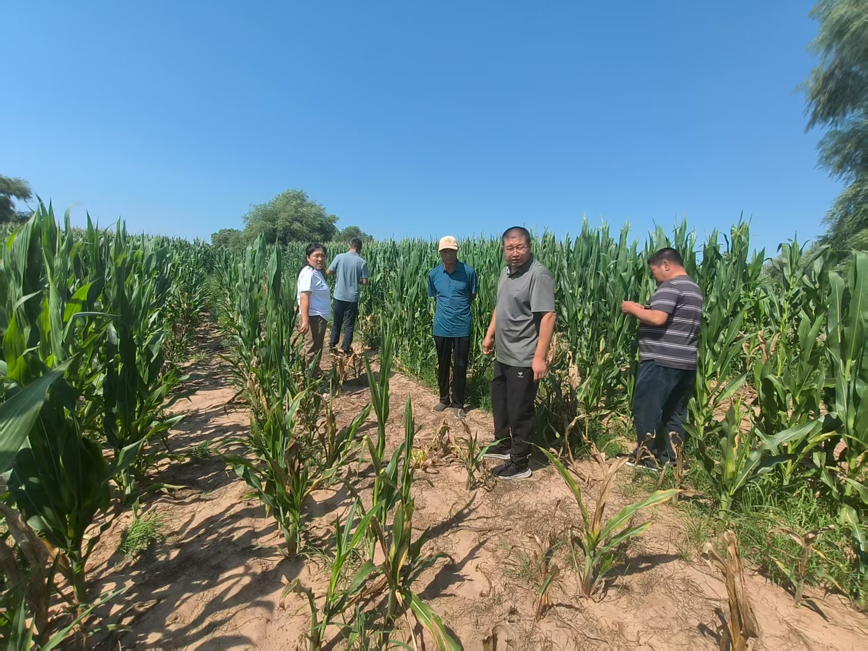 杨乡长及应急管理局人员到村查看玉米病灾和旱灾情况