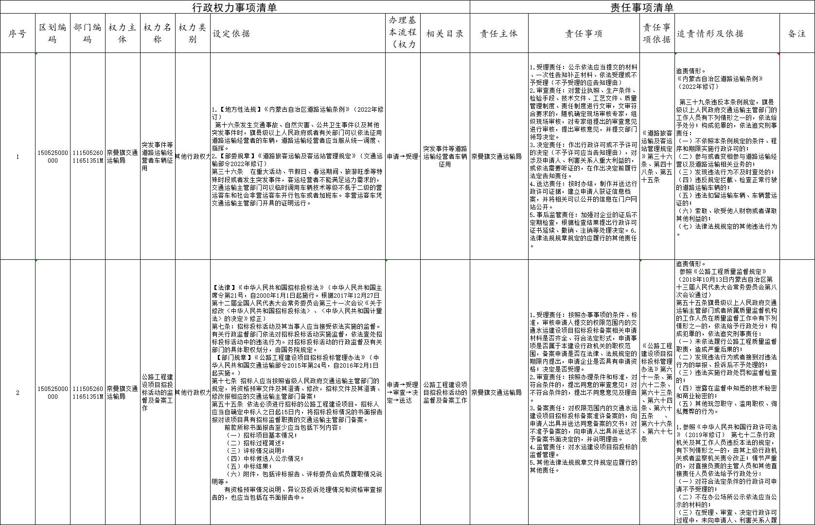 奈曼旗交通运输局行政权力事项、责任事项清单
