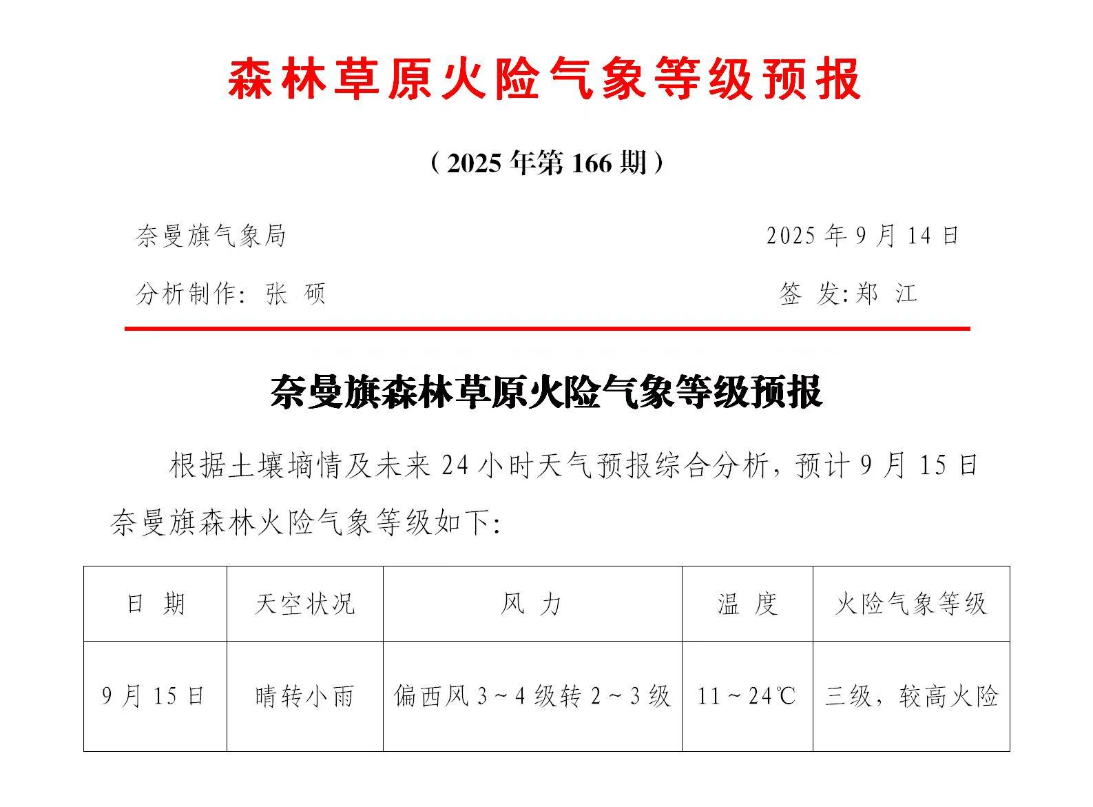 2025年9月14日森林草原火险气象等级预报