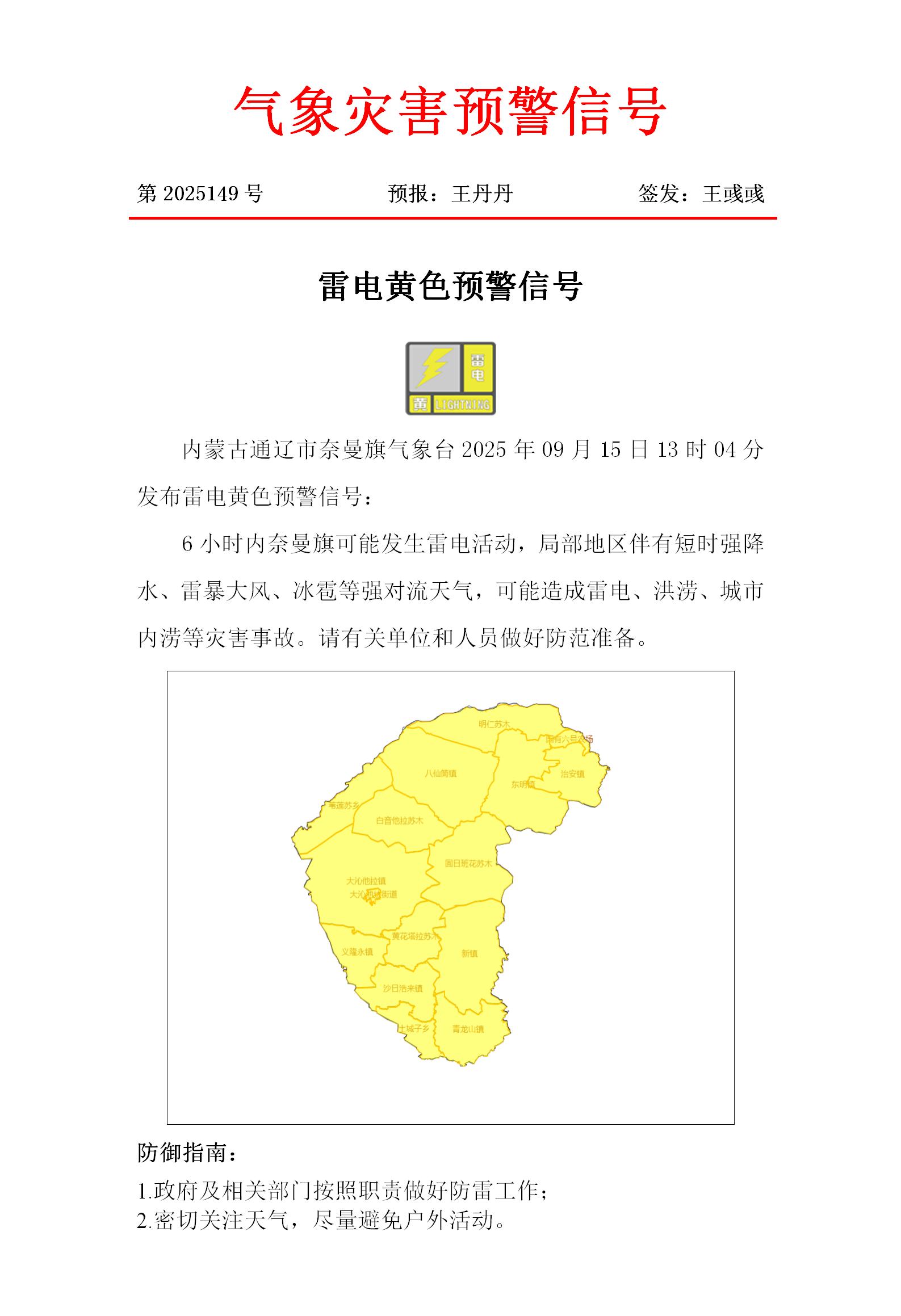 2025年9月15日雷电黄色预警信号