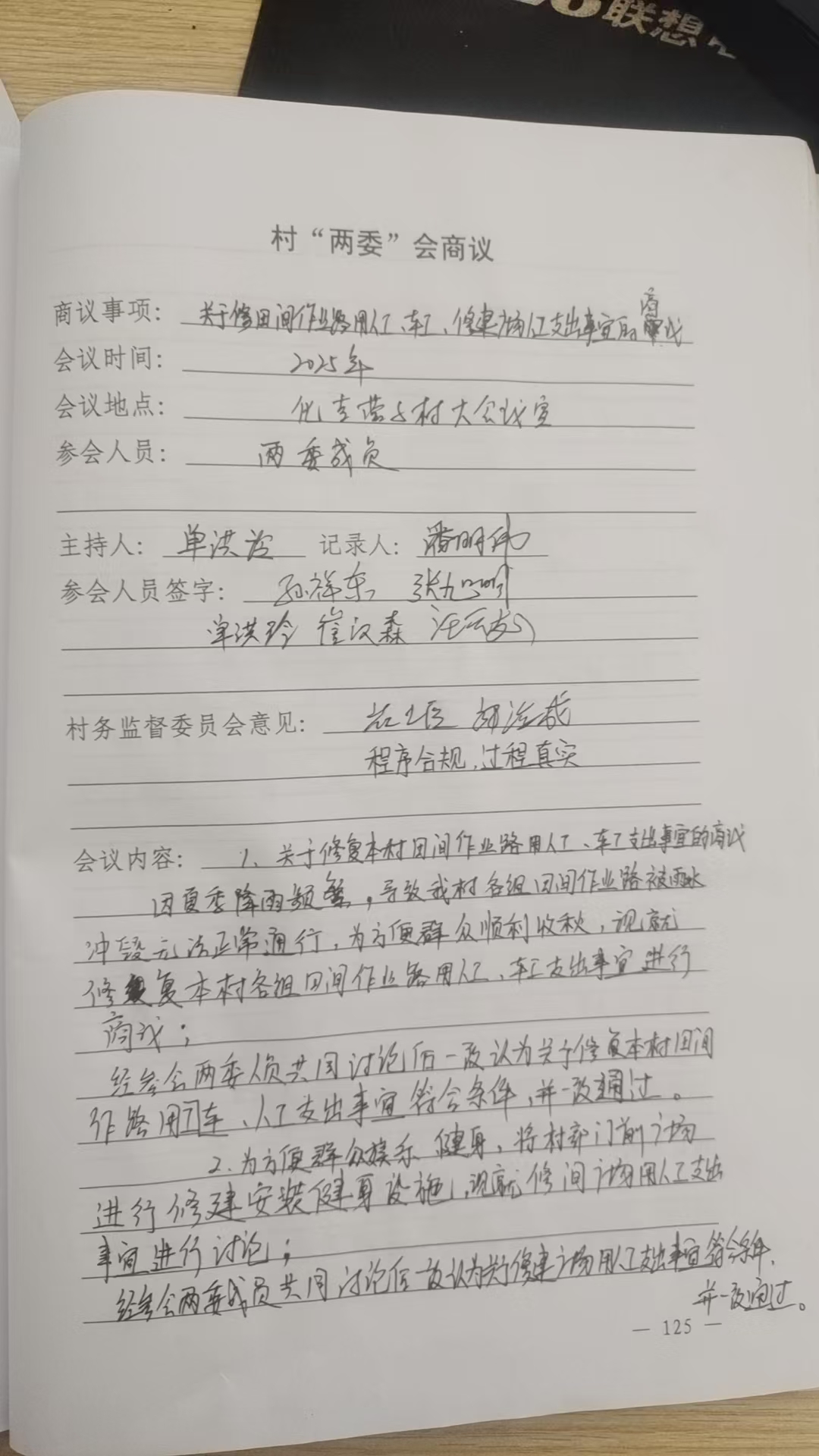 关于村内集体经济支出事宜两委会议