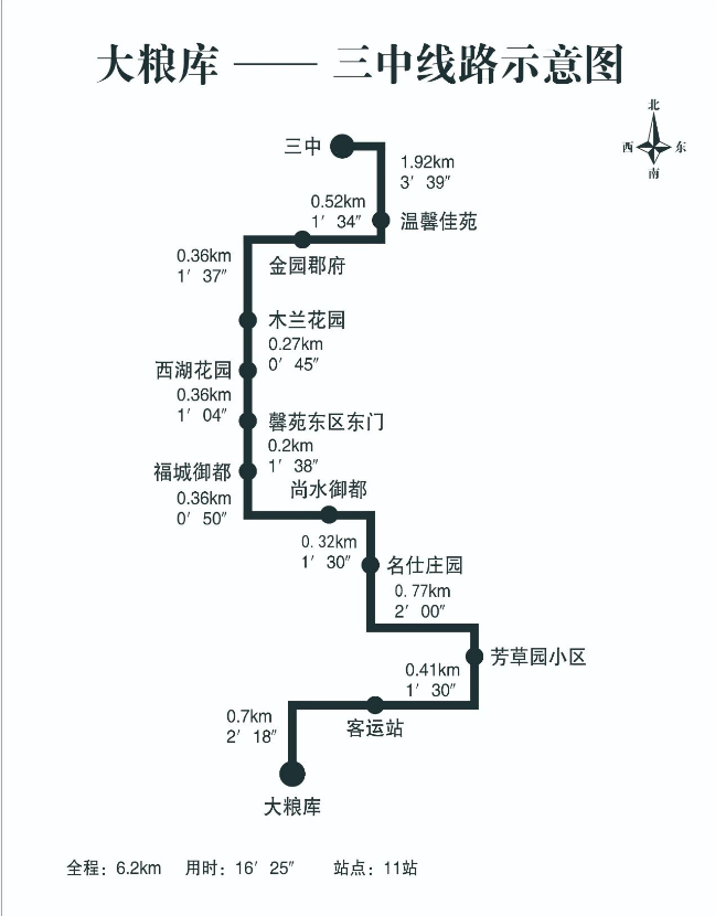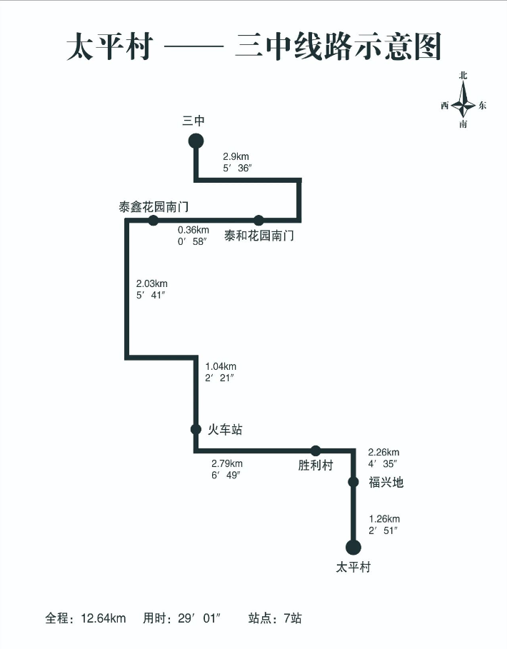 3.线路三:第三中学→太平村,具体见路线示意图。