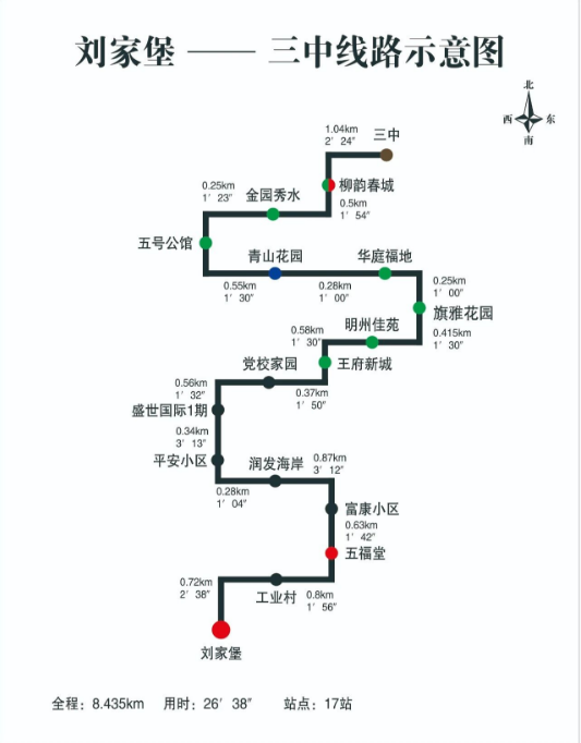 1.线路一:第三中学→刘家堡,具体见路线示意图;
