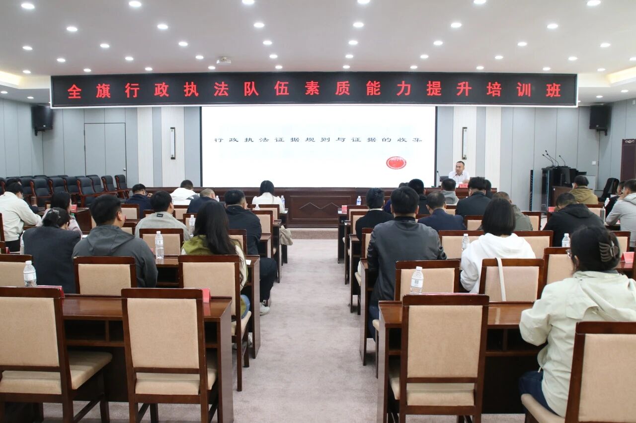开班仪式上,杨春生副旗长深刻指出,行政执法是法治政府建设的“最后一公里”,执法人员手中的执法记录仪、肩上的执法徽章,承载着法治信仰、发展大局与民生福祉。针对全旗存在的行政复议纠错率、执法不规范等问题,他强调此次培训是“靶向施治”的关键抓手,要求全体学员从提高政治站位、坚持学以致用、严守纪律规矩、狠抓整改落实四方面发力,把知识学深悟透、转化为执法为民的实际行动。