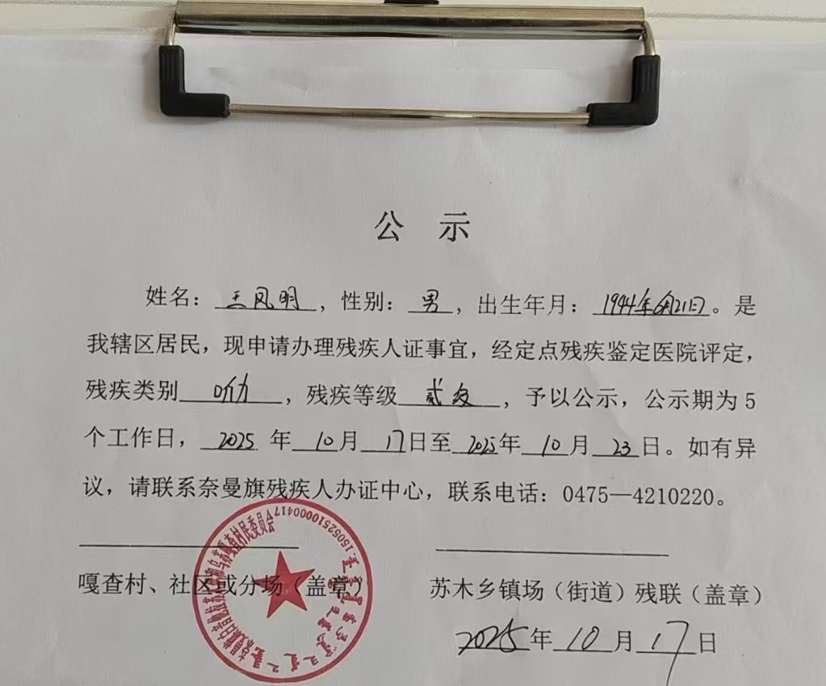 残疾人鉴定公示