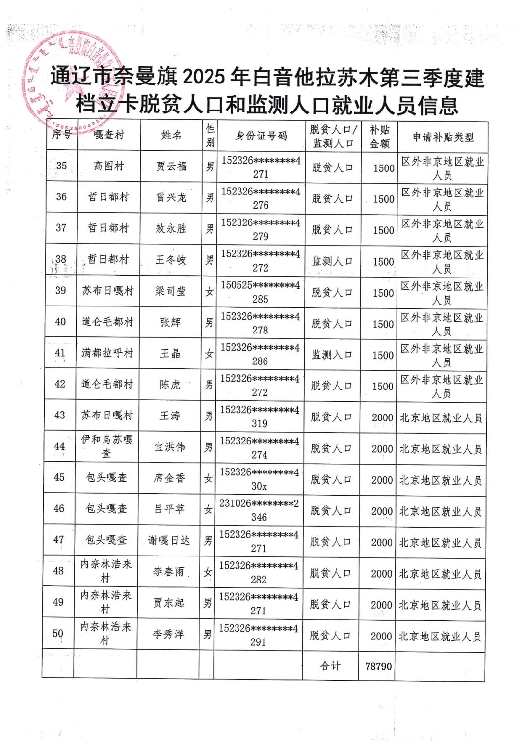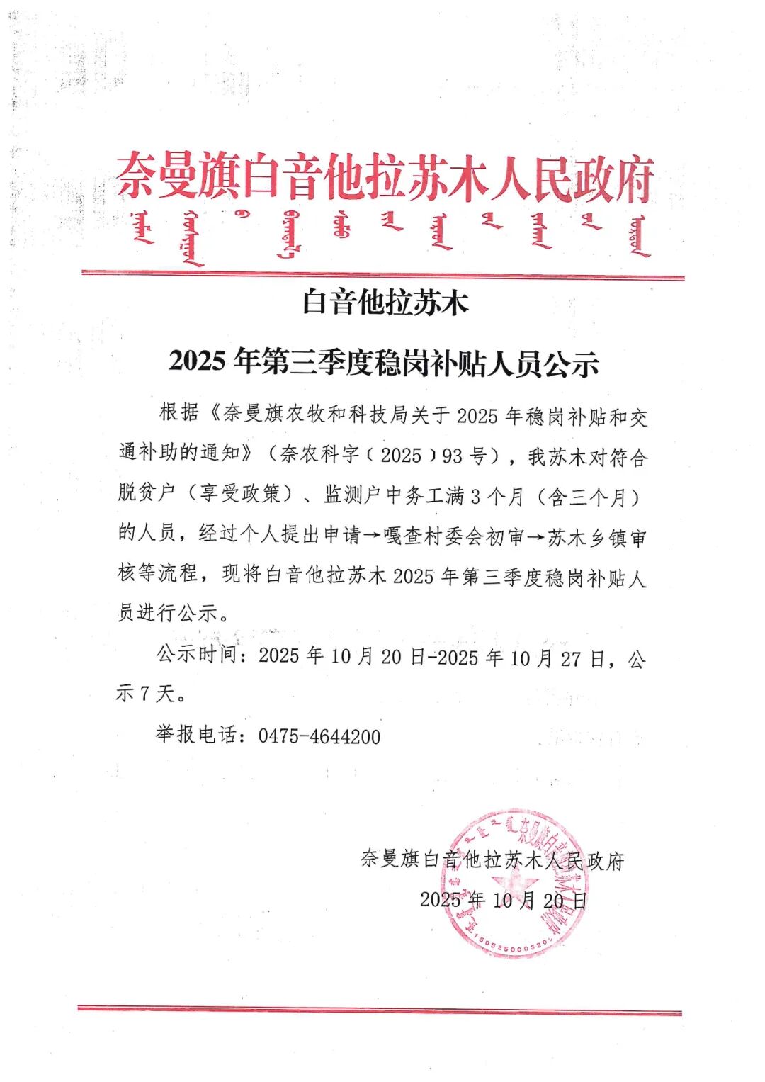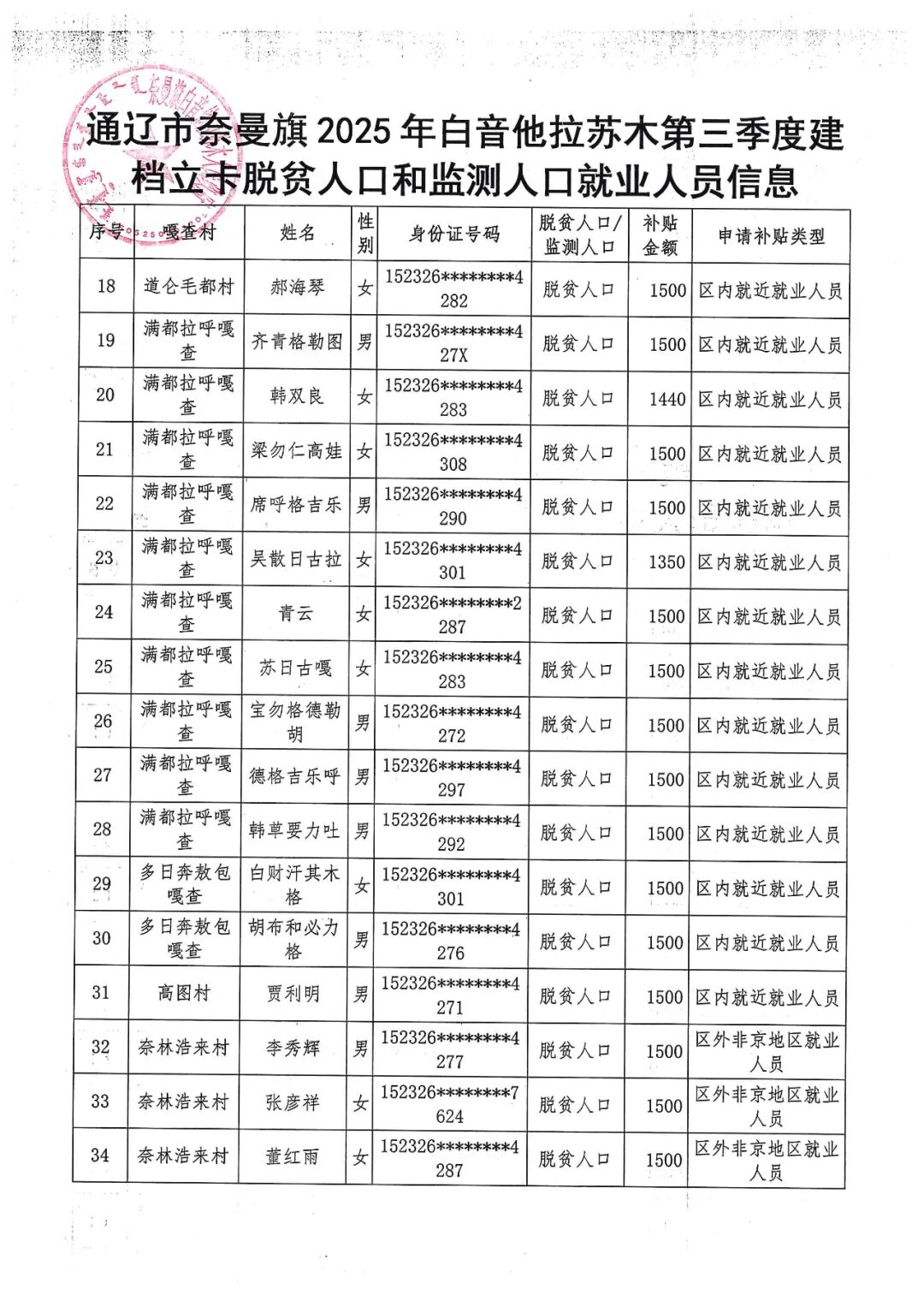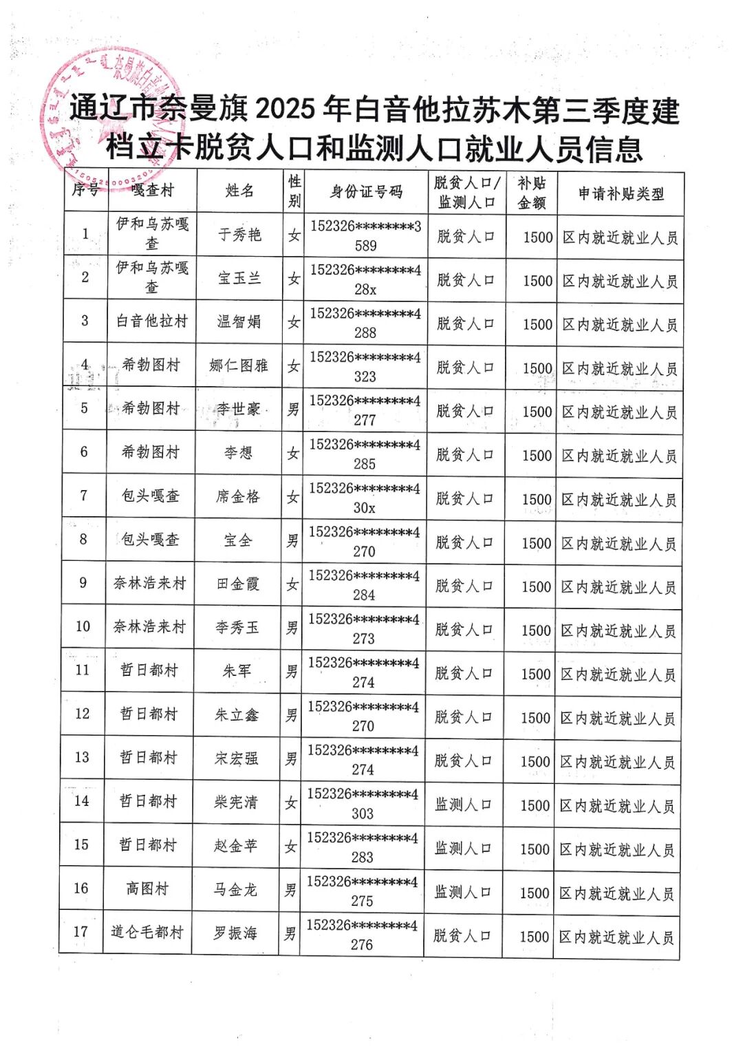 就业 —— 白音他拉苏木2025年第三季度稳岗补贴人员公示