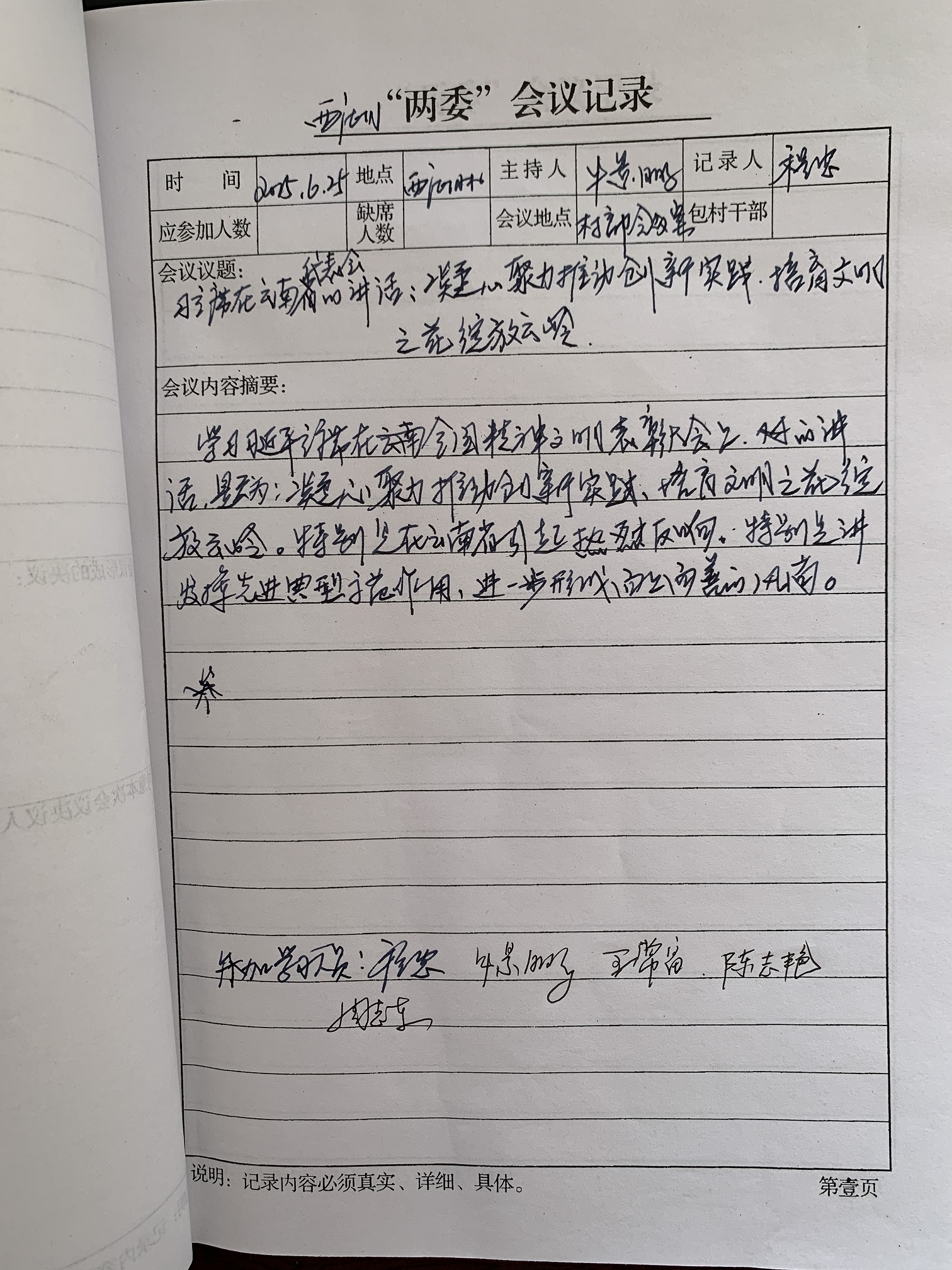 西湖村两委学习《习主席在云南代表会的讲话:凝心聚力推动创新实践、培育文明之花绽放云岭》