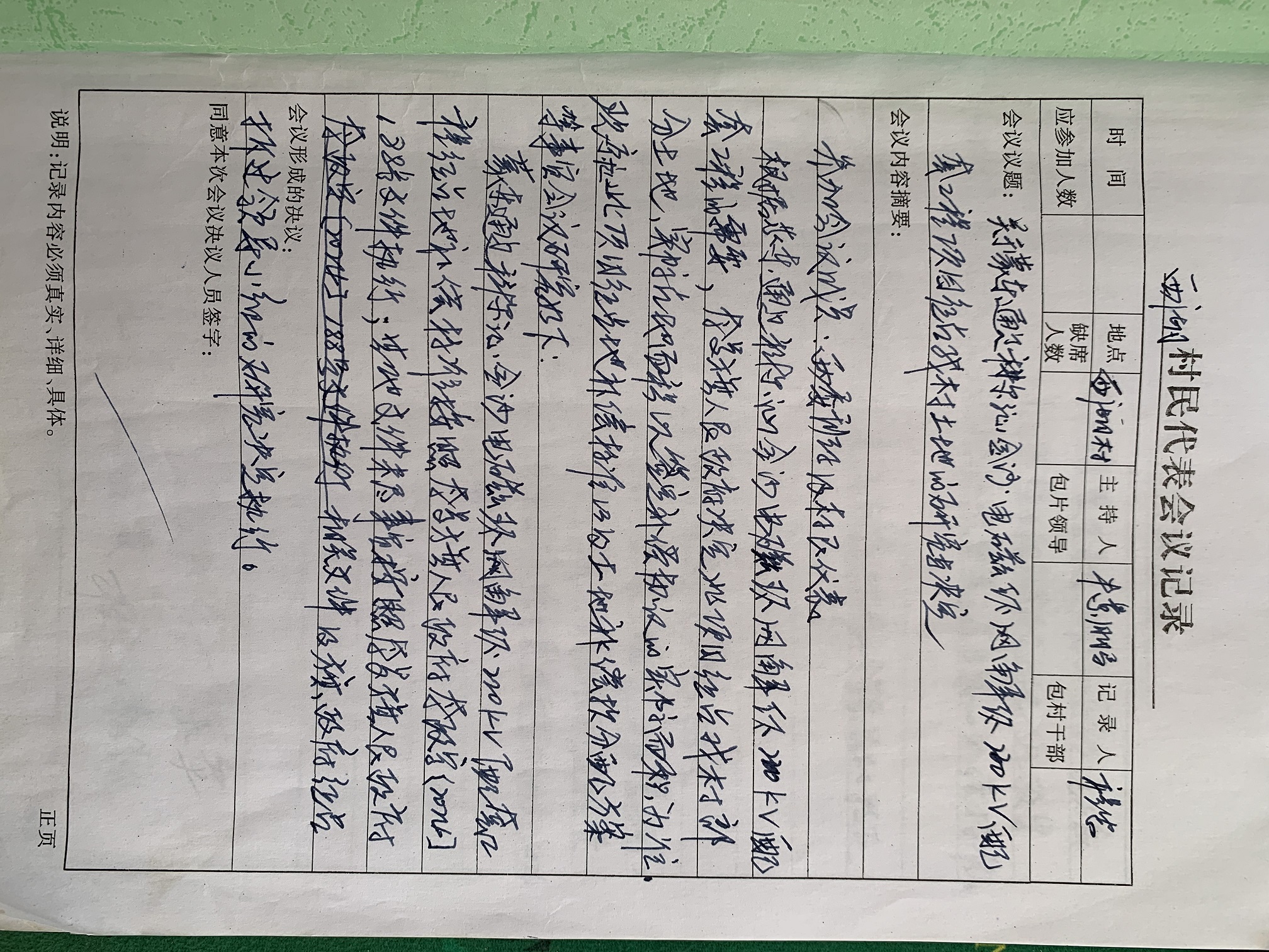 西湖村关于蒙东通辽科尔沁金沙电磁环网解环220KV配套工程项目征占我村土地的研究与决定