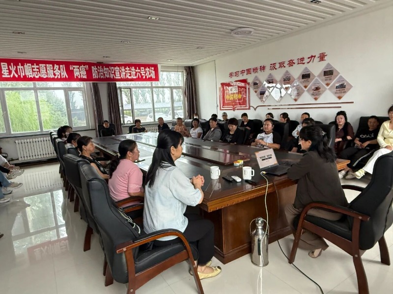 为提高基层妇女健康意识,有效预防和降低“两癌”(宫颈癌、乳腺癌)发病率,7月29日,星火巾帼志愿服务队成员旗妇幼保健计划生育服务中心妇女保健部部长、主任医师谢秀珍到六号农场开展“两癌”防治知识宣讲,各分场计生主任及辖区部分适龄女性参加此次讲座。