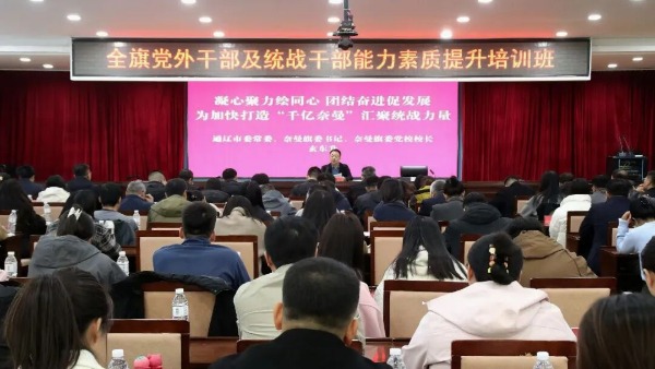 本次培训采取“理论学习+现场观摩+主题研讨”的方式,围绕习近平生态文明思想、深入学习贯彻全国民族团结进步表彰大会精神、深刻理解铸牢中华民族共同体意识的重大意义、落实统战工作责任制规定、坚持我国宗教中国化方向铸牢中华民族共同体意识、牢牢把握新时代统一战线工作的形势与任务、做好新时代党的统一战线信息宣传工作、深学笃行民营经济促进法护航民企高质量发展等内容进行专题学习并开展研讨。培训期间,参训人员将一同观看警示教育片《秦岭违建别墅整治始末一抓到底正风纪》,赴奈曼旗民族职专、国安农业开发有限公司等地进行现场教学,通过多元学习与实践,拓宽认知边界、积累知识技能,切实增强综合能力,为奈曼旗统战工作积蓄力量。