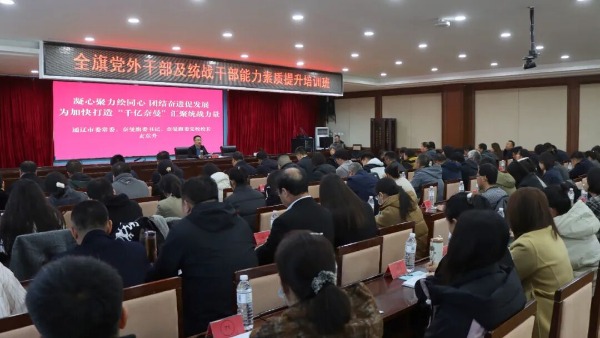 旗领导杨德鹏、张弘强、李婉钰、白音巴特尔,全旗现任党外科级干部,各苏木乡镇场(街道)统战干事、党外年轻干部,旗直各单位党外年轻干部共130余人参加培训。