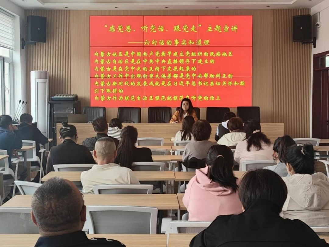 社区书记结合辖区发展实际和民生热点,面向党员骨干、社区居民开展主题宣讲,深入解读了“六句话的实事和道理”,重点围绕党中央对内蒙古的关怀引领,从政策扶持、生态保护、民生改善等方面,讲述内蒙古在党的领导下取得的发展成就,引导在场党员群众深刻感悟党的恩情,坚定听党话、跟党走的信念。