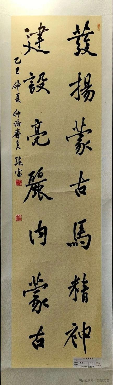 “辽蒙翰墨凝初心 五地同书爱国情”书法巡展正式启幕。此次活动由内蒙古自治区奈曼旗、库伦旗、科左后旗,以及辽宁省阜新蒙古族自治县、彰武县五旗县委宣传部联合主办,以书法艺术为纽带,串联起辽蒙两地的深厚情谊。张富作为奈曼旗代表参展,其作品笔锋苍劲,字里行间饱含对祖国 76 周年华诞的真挚祝福,充分彰显了基层司法工作者的家国情怀。目前“奈曼文艺”正陆续展播其作品,让更多人感受司法人的爱国热忱。