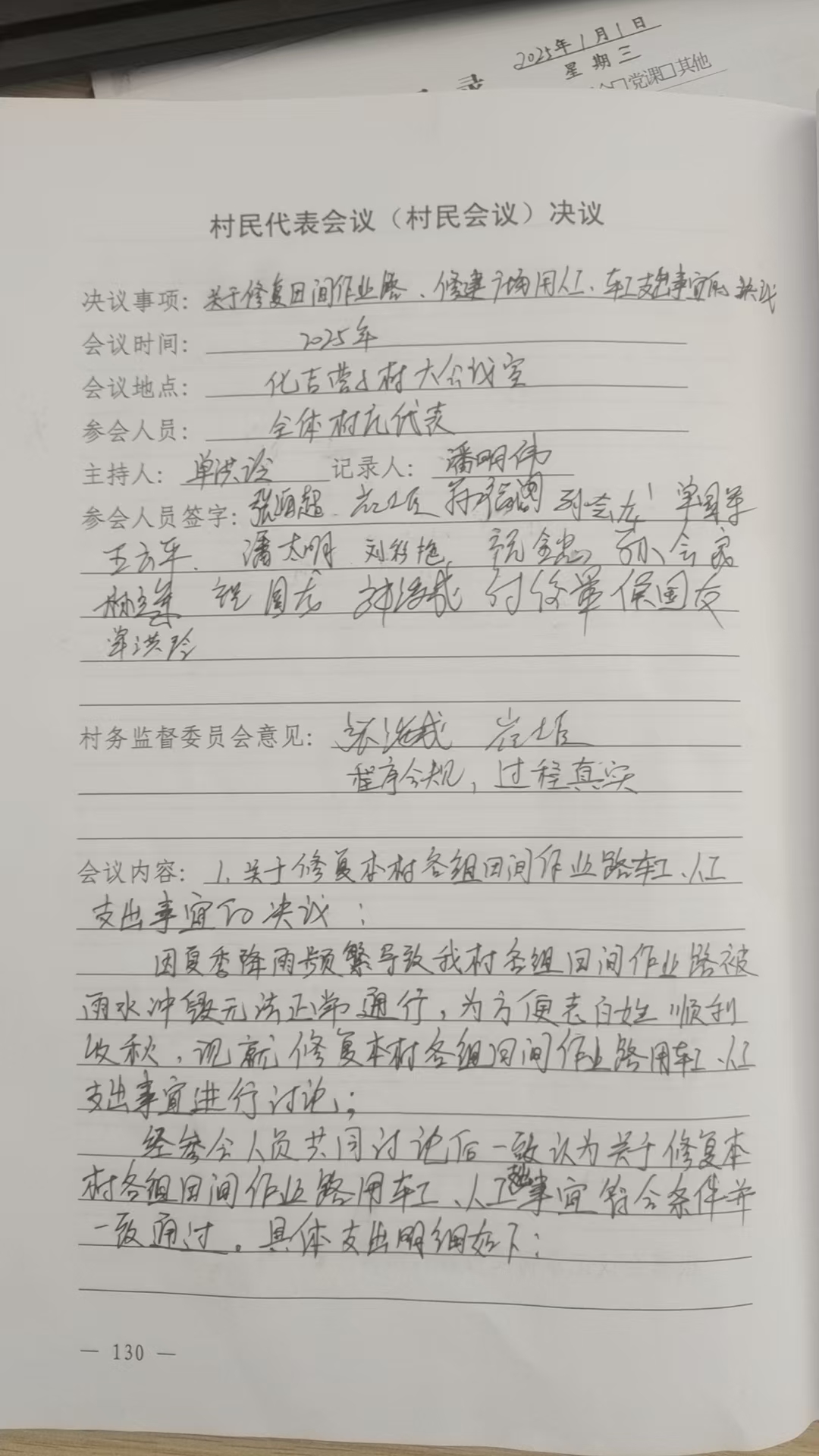 关于近期村内集体经济支出村民代表会议