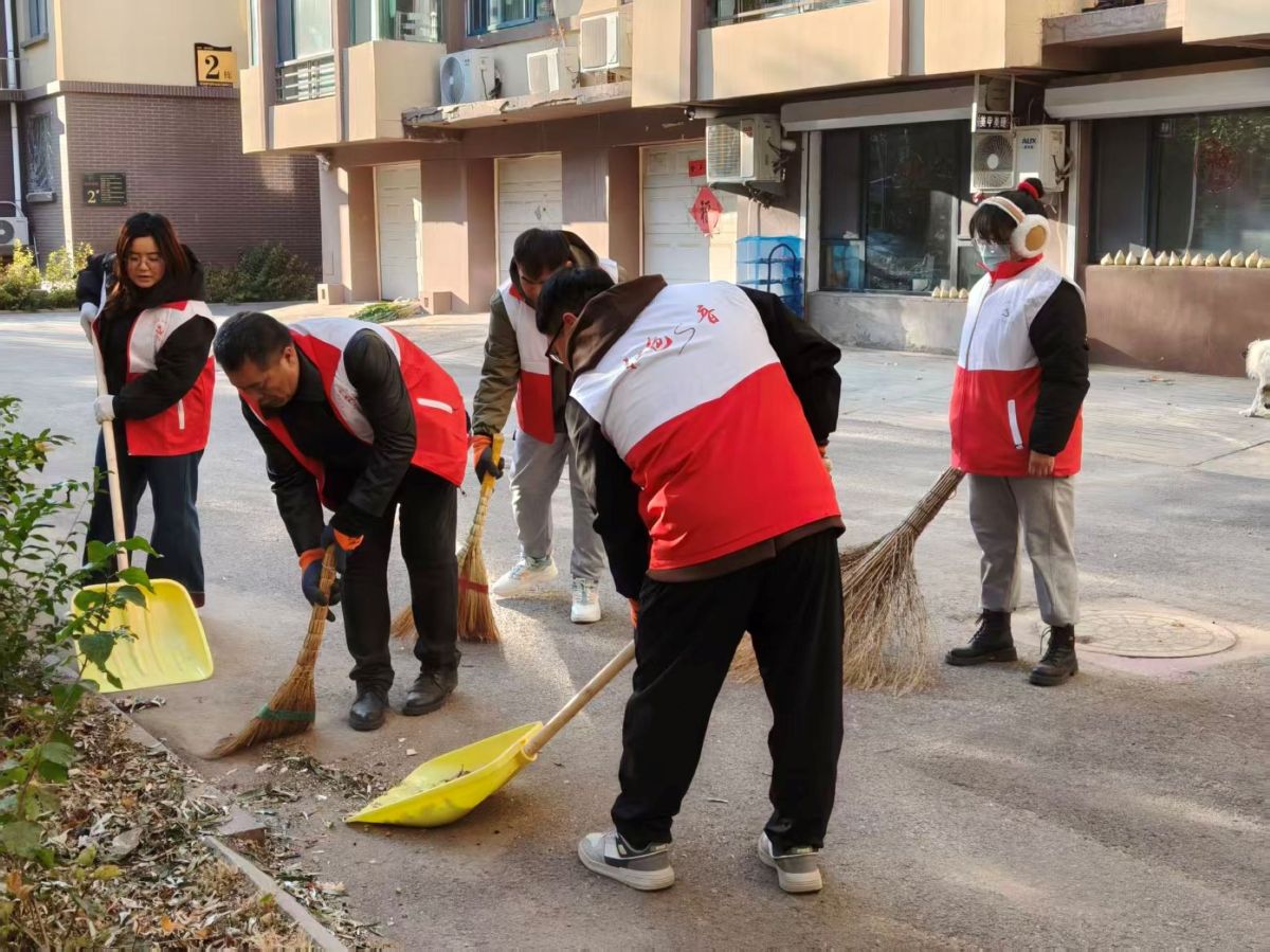 首先,志愿者们身穿红色马甲手持扫帚,积极投入到环境卫生整治中。他们清理车棚内的垃圾和杂物,让小区的环境焕然一新。