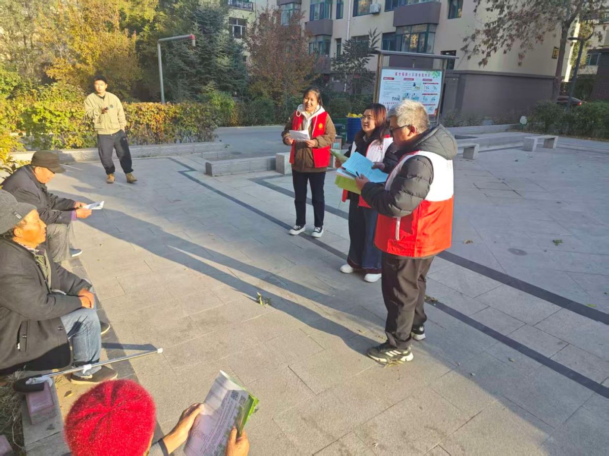 2025年10月24日下午,老哈河社区共驻共建单位旗委党校,到包联小区内开展感党恩、听党话、跟党走群众教育实践活动,为小区居民清理车棚内的卫生及杂物,净化生活环境;开展“敲门行动”入户宣讲惠民政策,把感党恩、听党话、跟党走群众教育实践走深走实。
