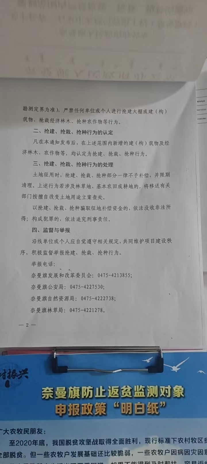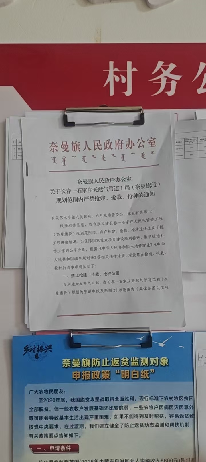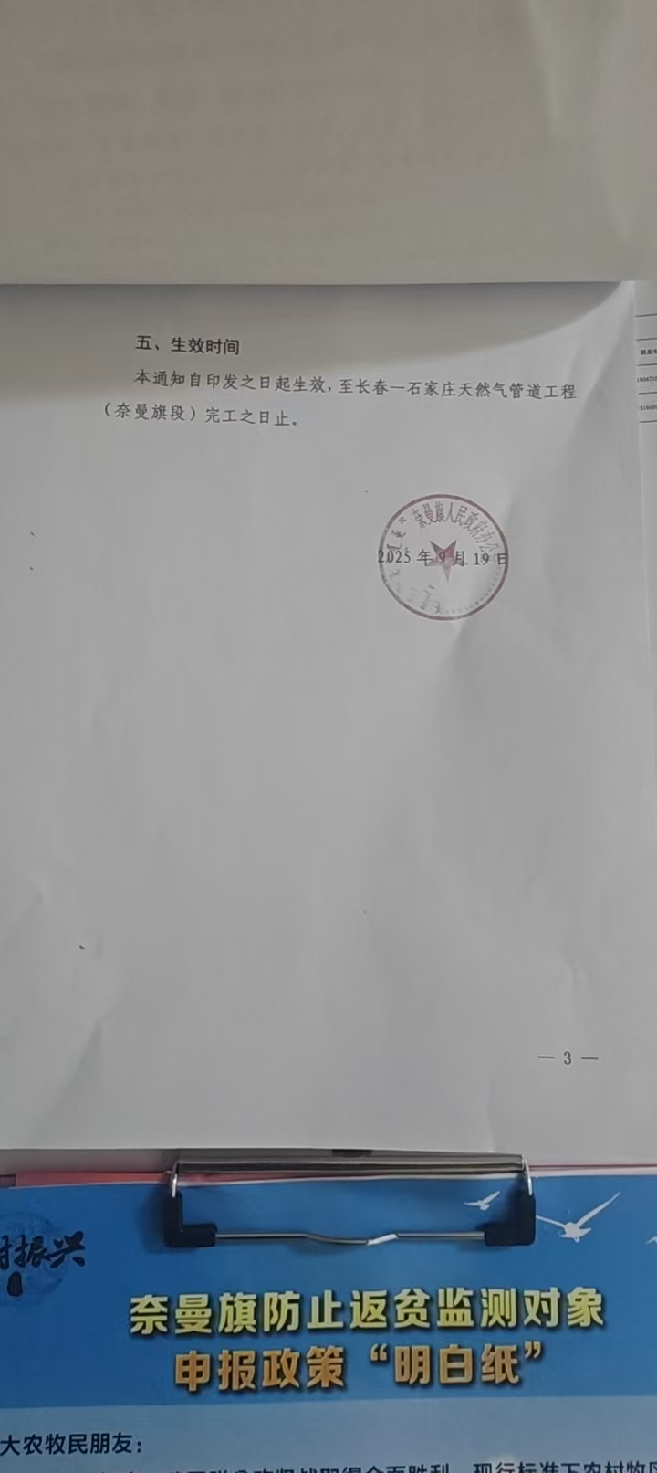 关于长春-石家庄天然气管道工程(奈曼旗段)规划范围内严禁抢建,抢栽,抢种的通知