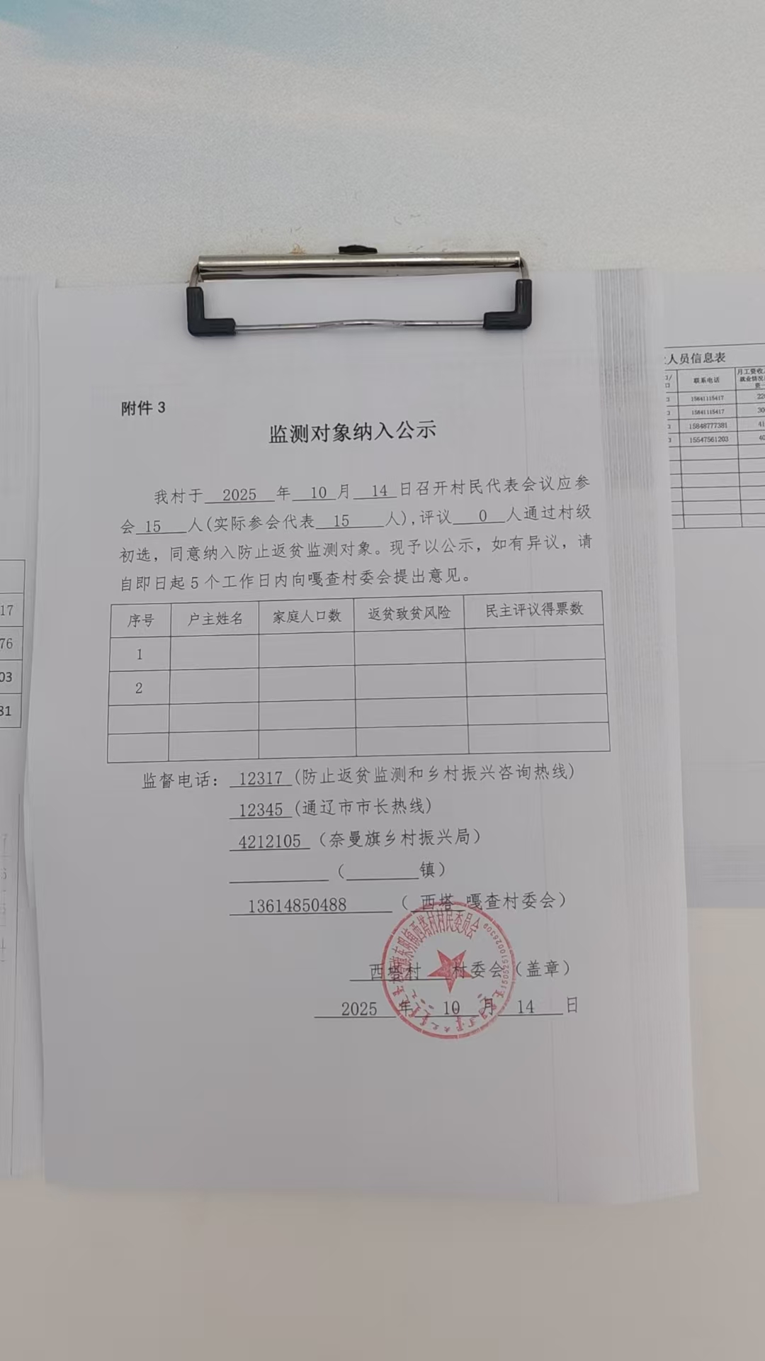 西塔村10月份拟纳入监测户对象公示