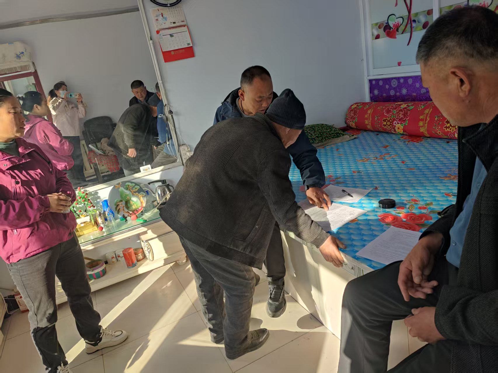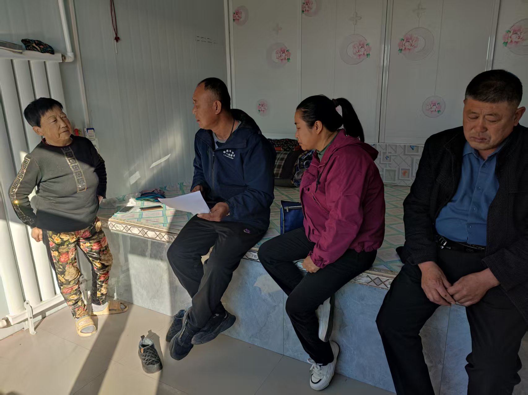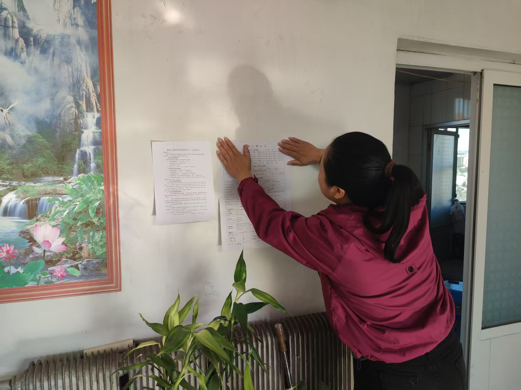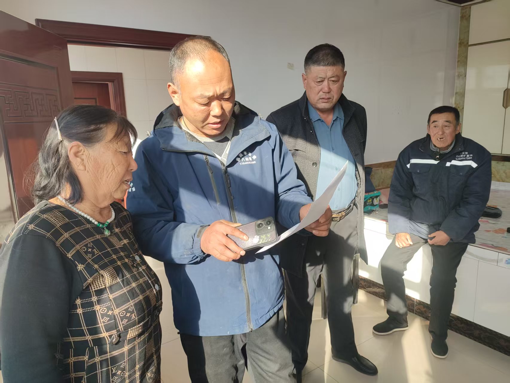 平安地村驻村工作队,村定补干部入户遍访宣传政策,张贴明白卡
