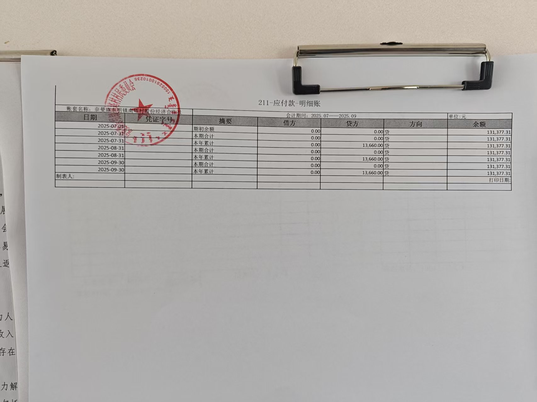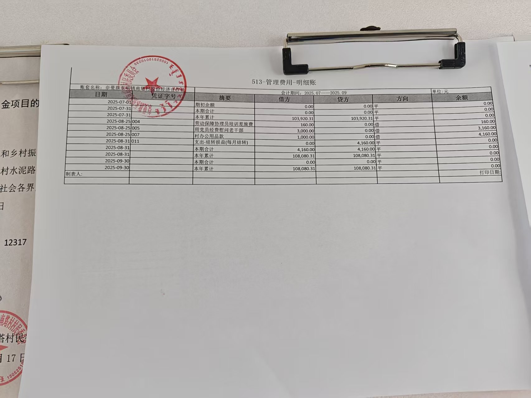 南塔村第三季度财务公开