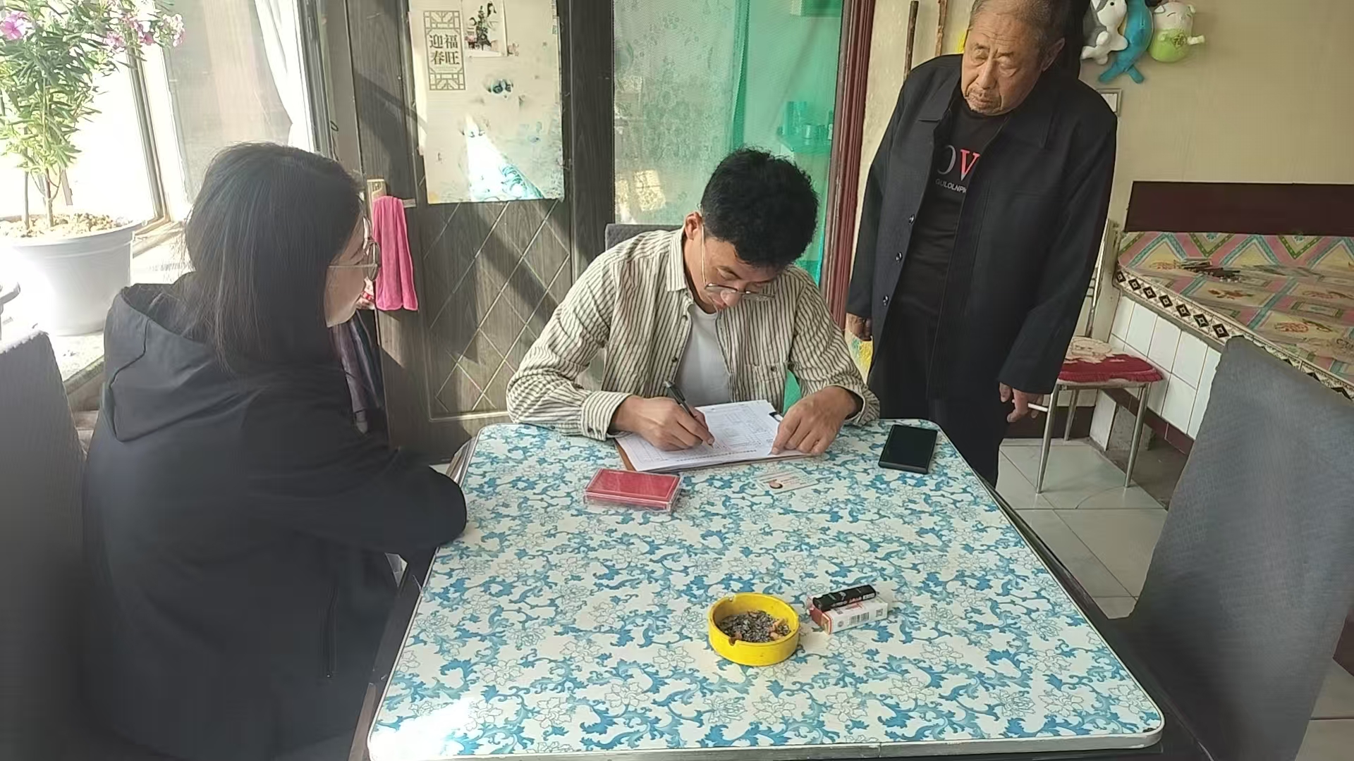 社会事务办公室王晓东、郭慧颖到糖坊村低保家庭入户。