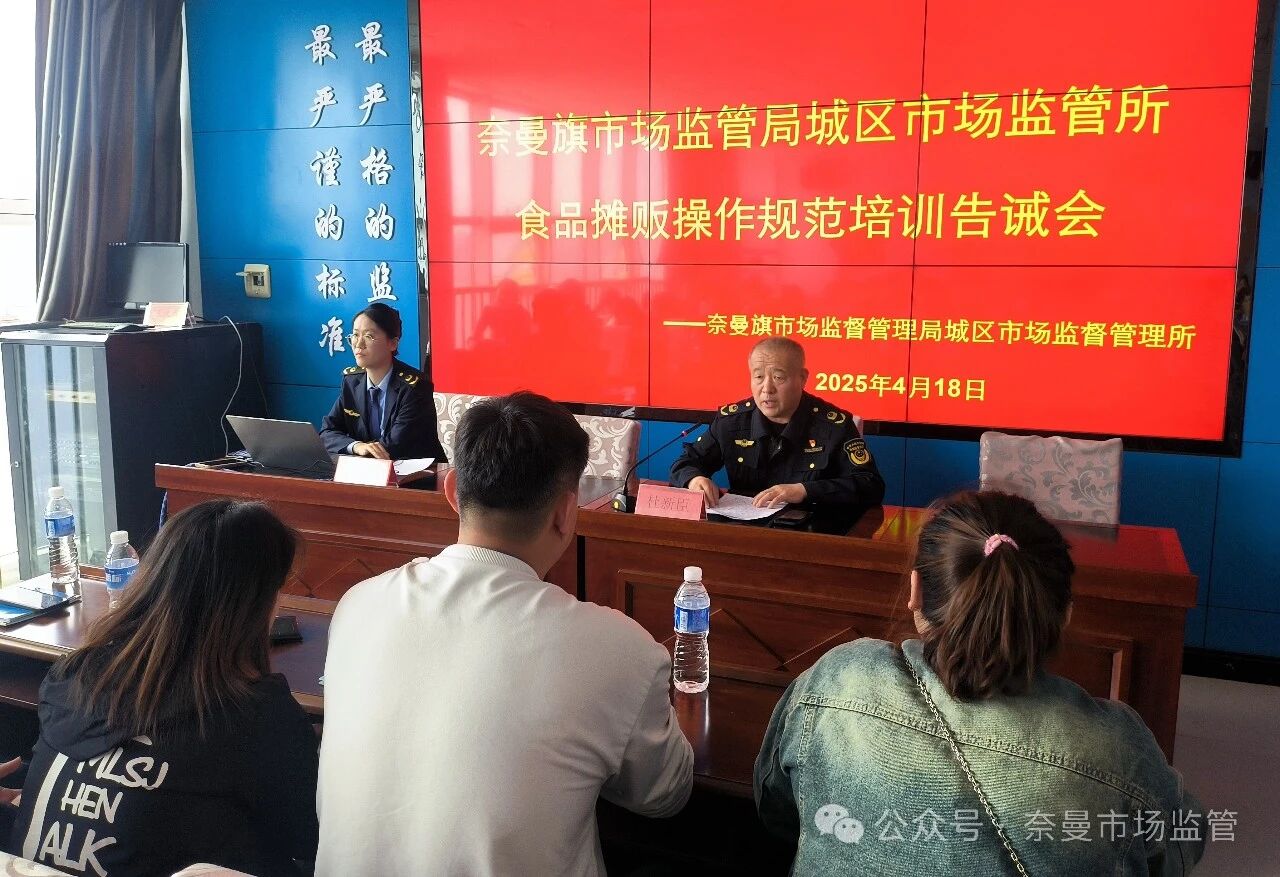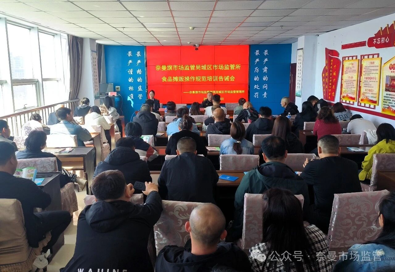 随着气温回升,夜市经济即将迎来消费旺季。为保障市民饮食安全,提升食品摊贩规范经营水平,4月18日,奈曼旗市场监管局组织召开“食品摊贩操作规范培训告诫会”,56名食品经营者及从业人员参与培训,为即将到来的夜市开市筑牢安全防线。