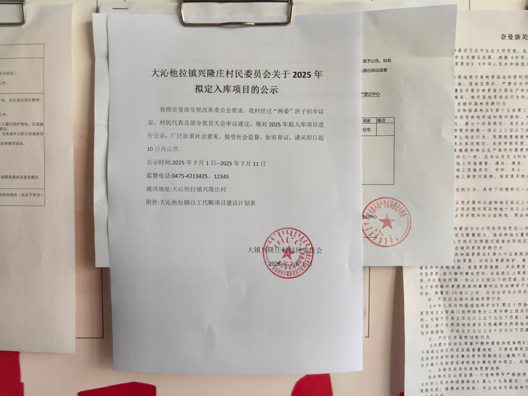 大沁他拉镇兴隆庄村2025年项目拟入库公示