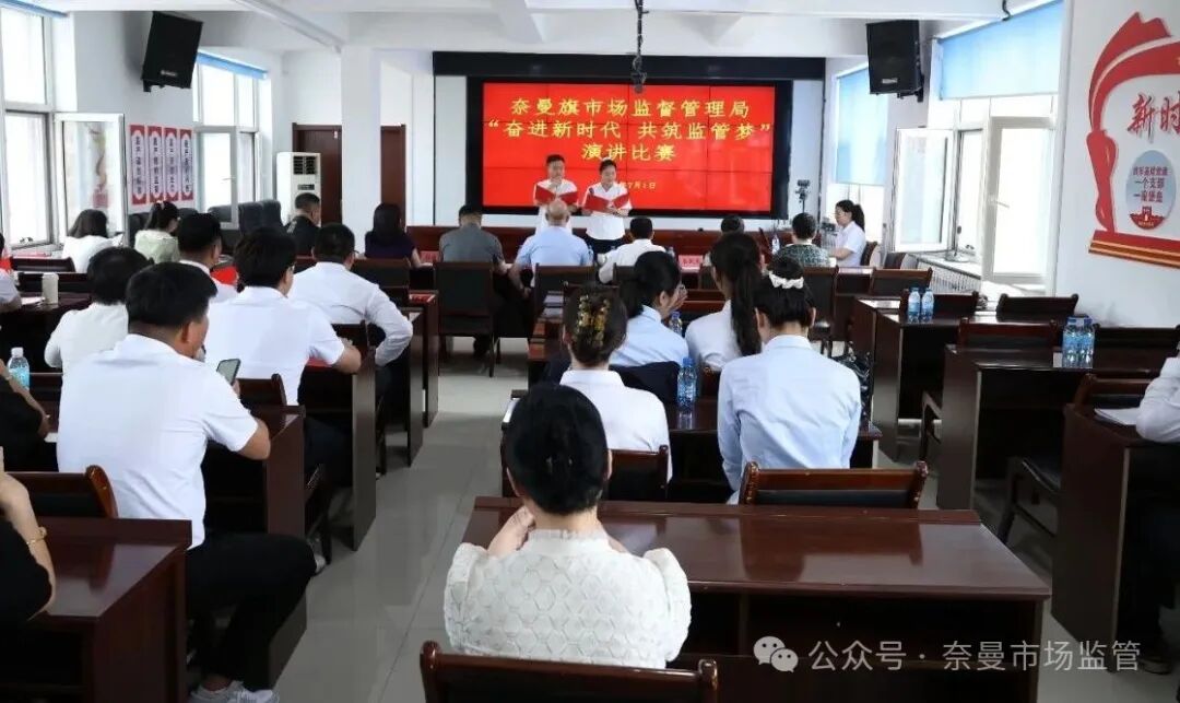 为庆祝中国共产党成立104周年,深入贯彻中央八项规定精神学习教育,激发广大干部职工的爱国热情,坚定永远跟党走的政治信念,营造“感党恩、听党话、跟党走”的浓厚氛围,7月1日,奈曼旗市场监督管理局举办庆七一系列活动之“奋进新时代 共筑监管梦”演讲比赛。来自旗市场监管局各股室队所的19组选手参加了比赛。
